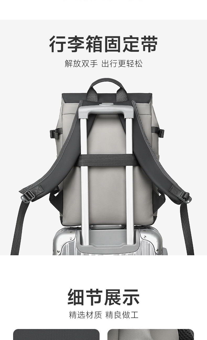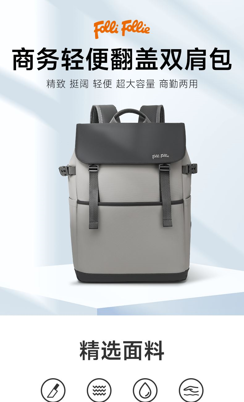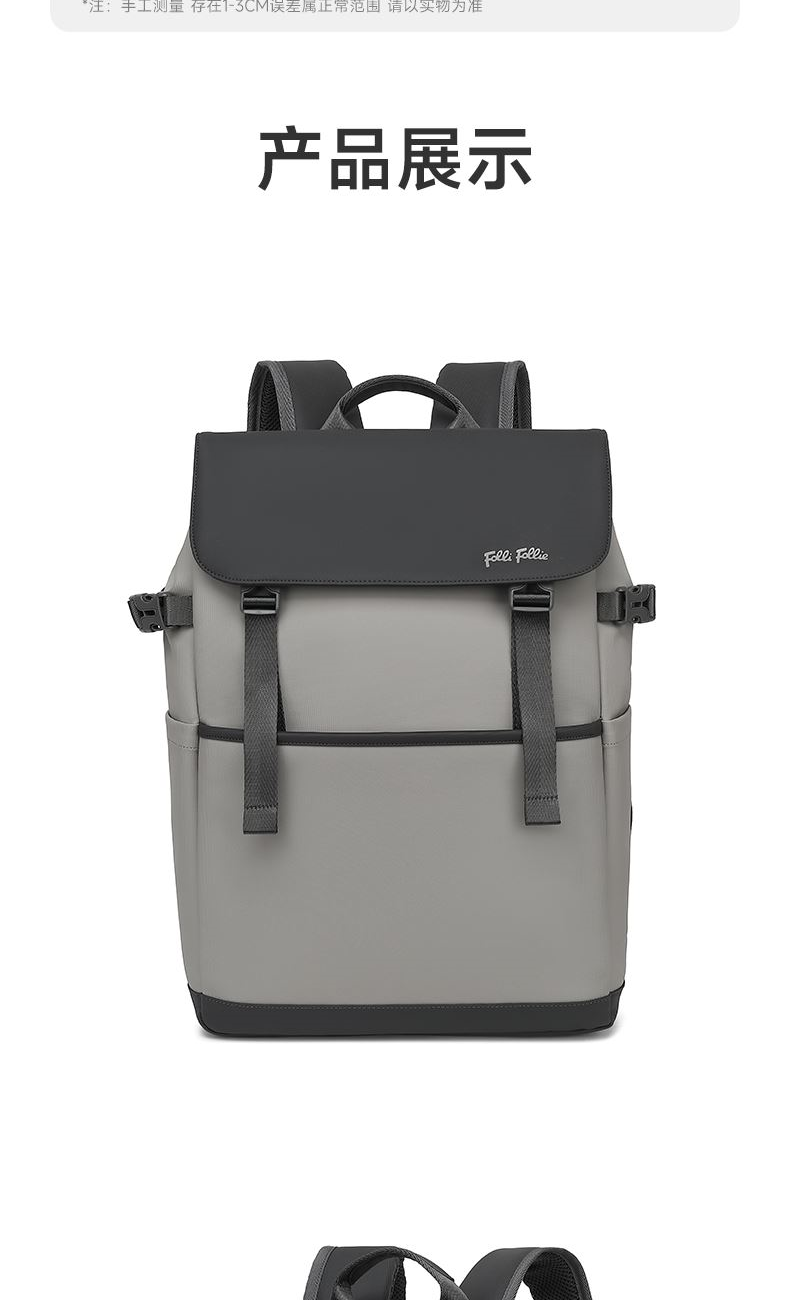精心布局,合理利用每一寸空间,商务人士的不二之选。 舒适透气肩带,贴合背部,缓解压力,背负更轻松 面料升级版防泼耐刮划,全新耐磨防泼水面料 柔软质感 日常易打理型号: FF-D003A 品号:SB24JW011GRAY 面料材质:PU料(面)+聚酯纤维(里) 里布材质:聚酯纤维 尺寸: 30*13*44.5CM 颜色:灰色 结构:1主仓(带电脑仓)、1前拉链袋、2侧袋、2内插袋、1内拉链袋