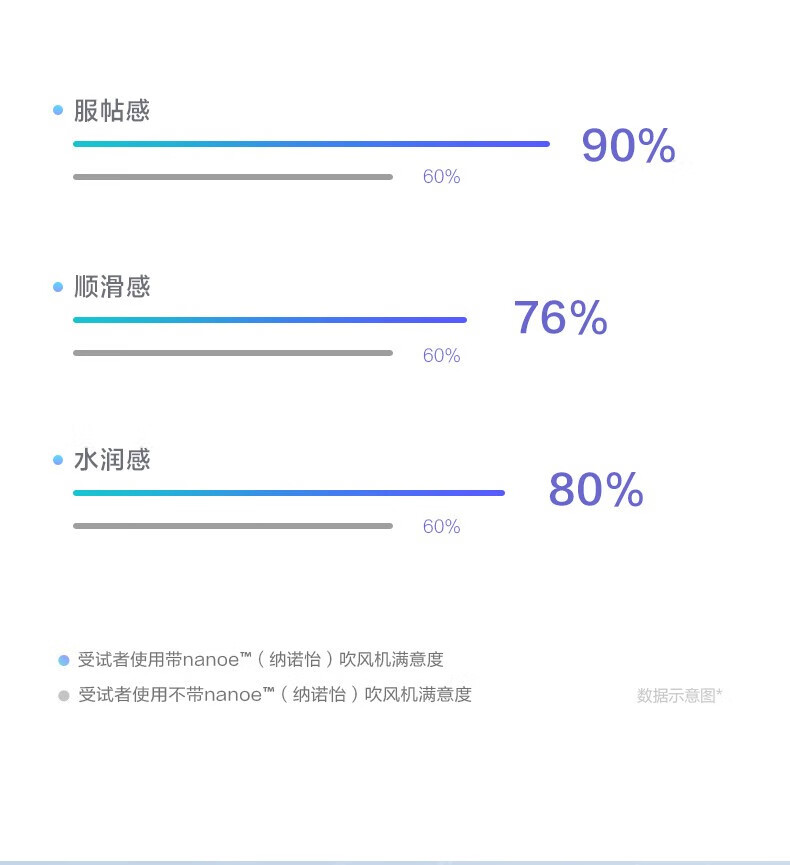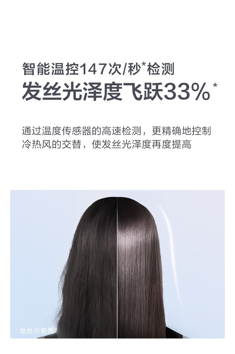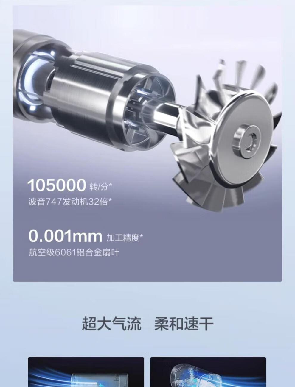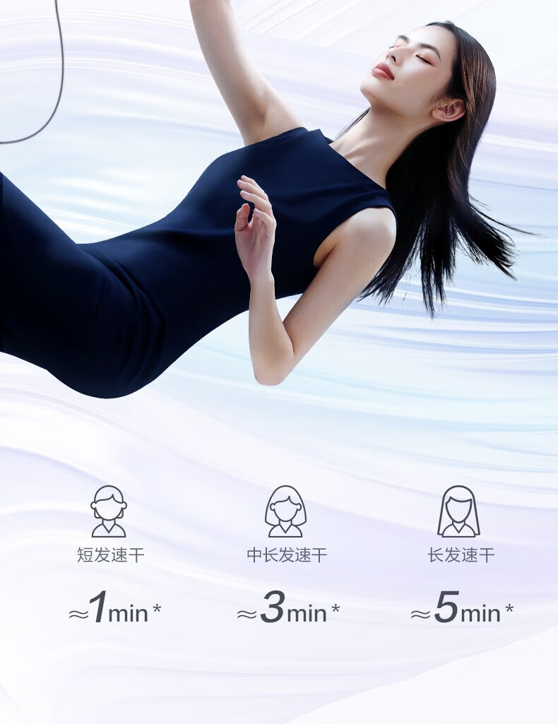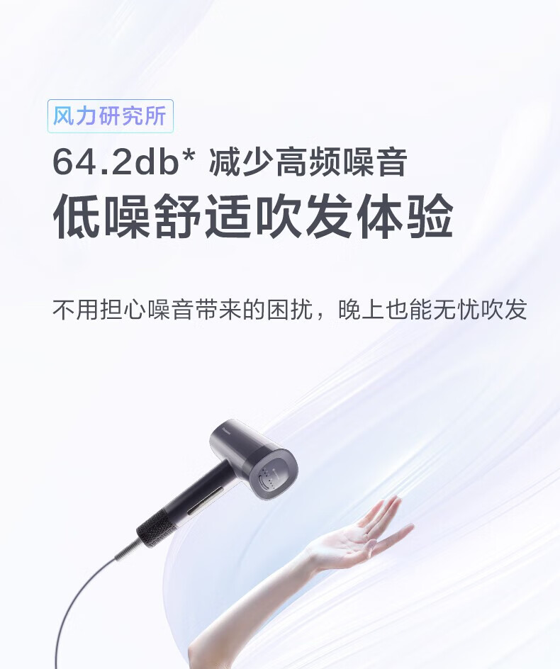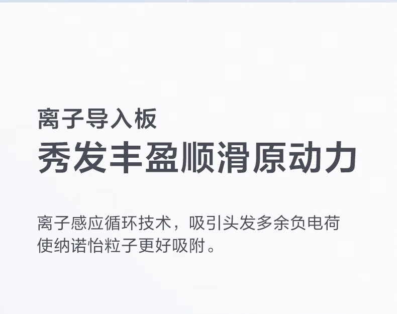 尺寸:14.5*7.0*24.2cm 功率:1200W 转速:105000转/分 净重:484g 诺怡技术补水润发 高速无刷马达低温速干 离子导入技术 促进纳诺怡更好吸附发丝 离子感应循环技术 促进纳诺怡成分更好吸收 10w转/分高速无刷马达 大风力低温速干 L型无损风道,广域风嘴设计 三档风速,四档风温