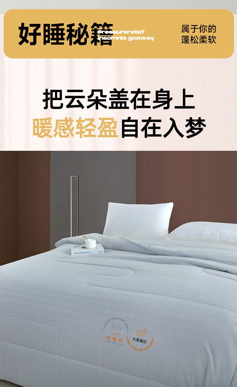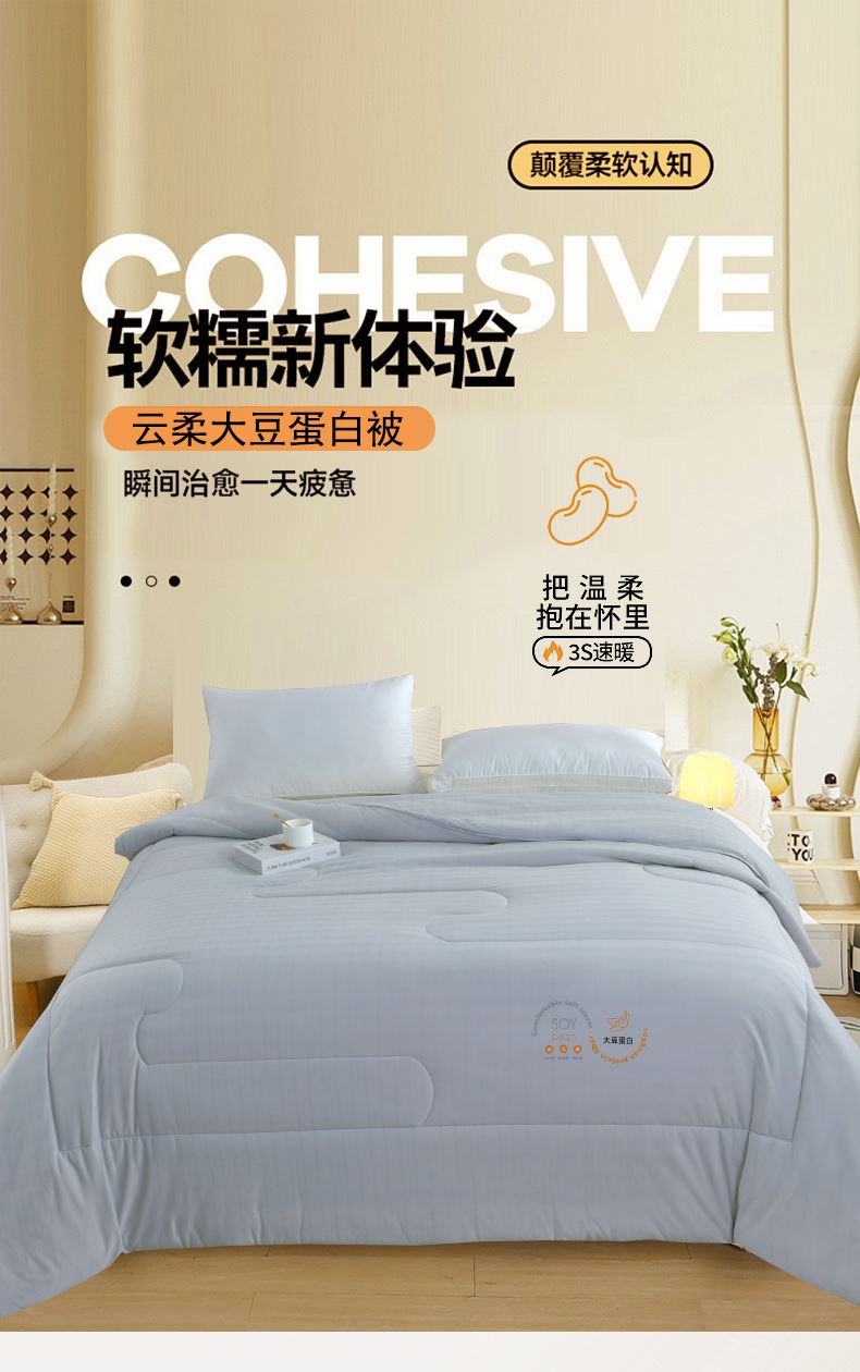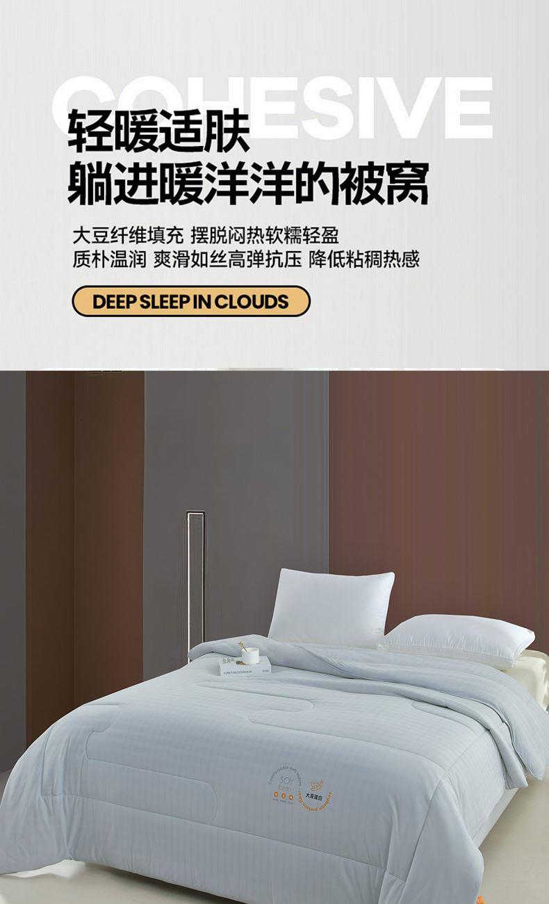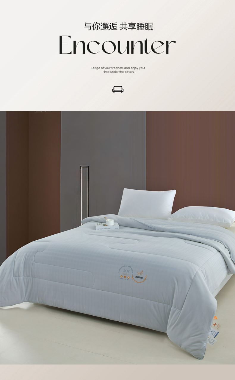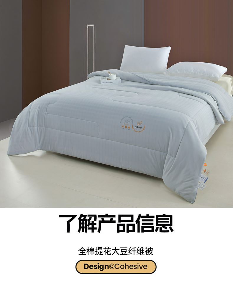 面料材质:针织棉 填 充:羽丝棉 产品规格:200*230cm 克 重:2000g 产品包装:精美礼盒 包装尺寸:50*40*20cm 1.针织棉面料质地较薄、较轻,吸水性和透气性能较好。 2.针织棉面料不容易缩水,还具有快洗易干的特点。