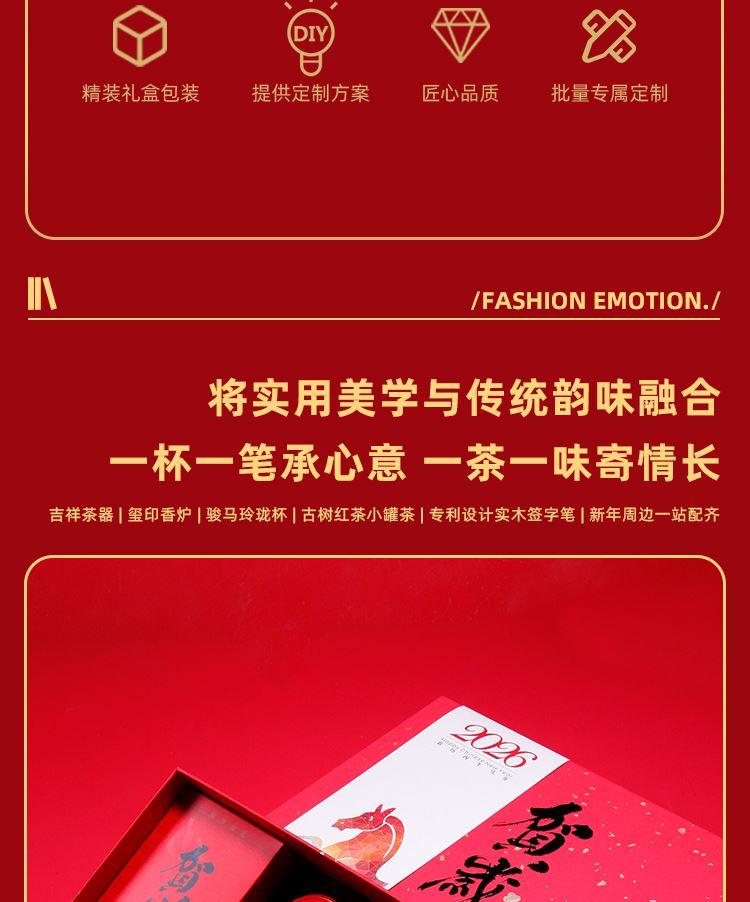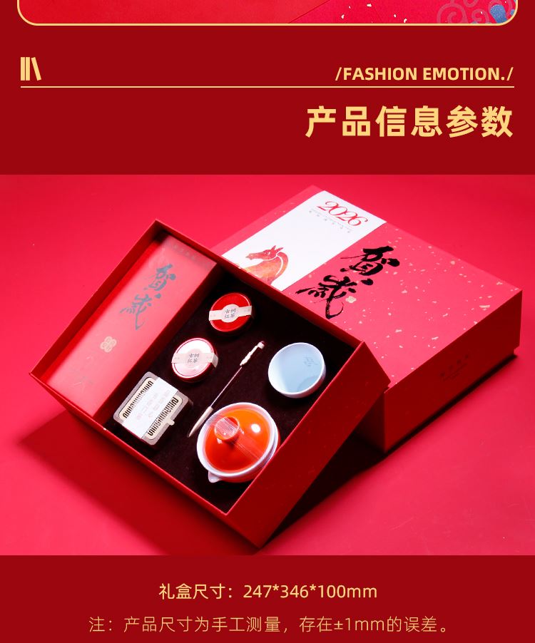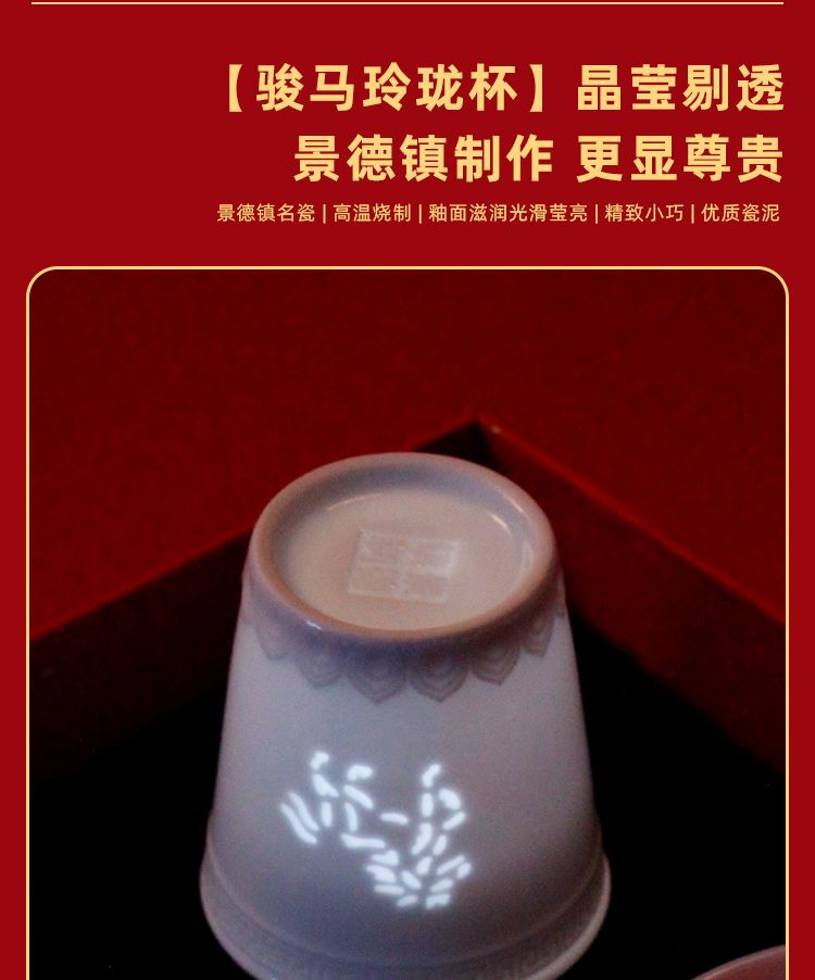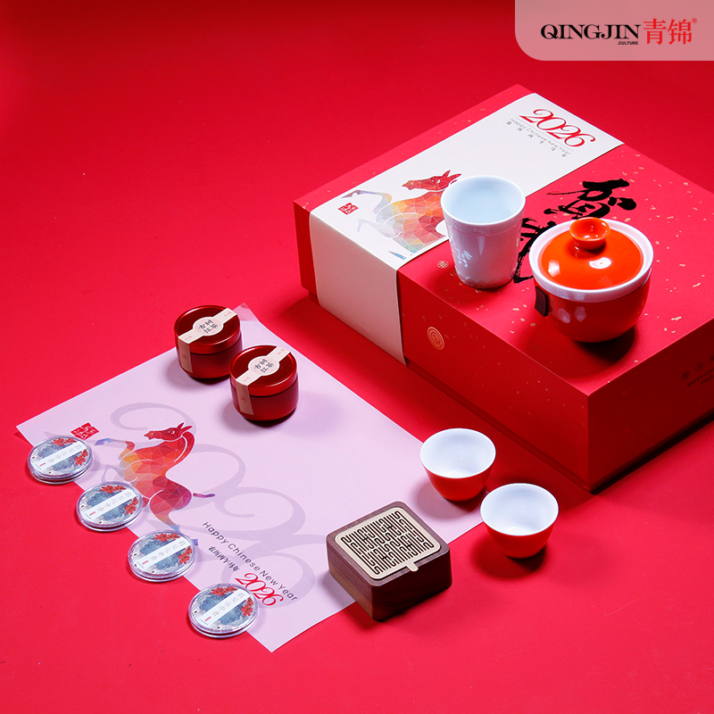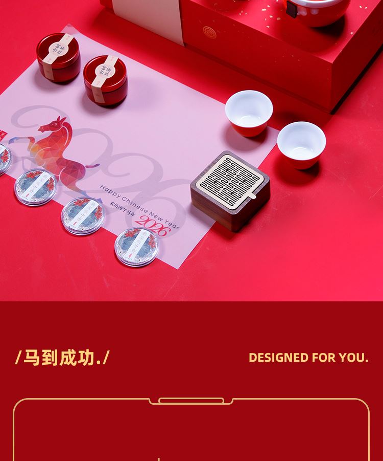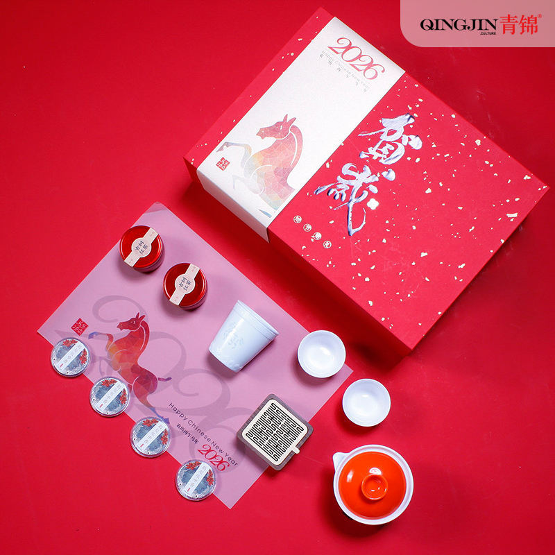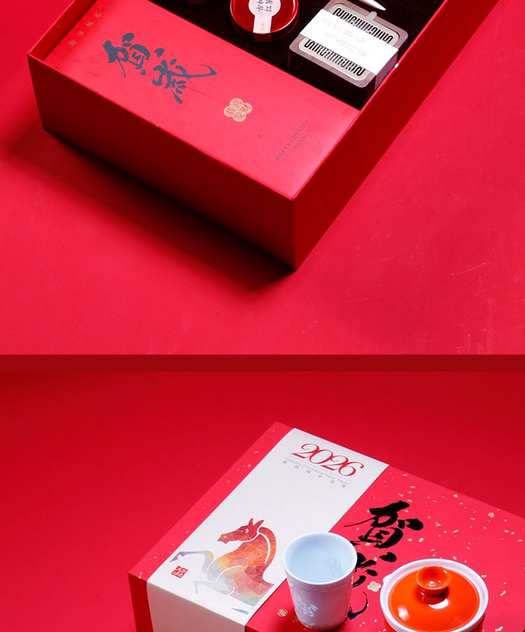 吉祥茶器*1祥云宝珠笔*1 玺印香炉*1古树龙珠*2 骏马玲珑杯*1 对联*1-红包*4 门神*2 精装礼盒手提袋*1 景德镇骏马玲珑杯创意马年主题 茶香-趣味十足的一套中式文创茶礼 精致礼盒对联红包让新春氛围拉满一套起订logo