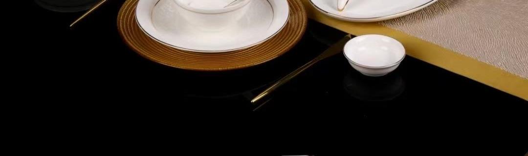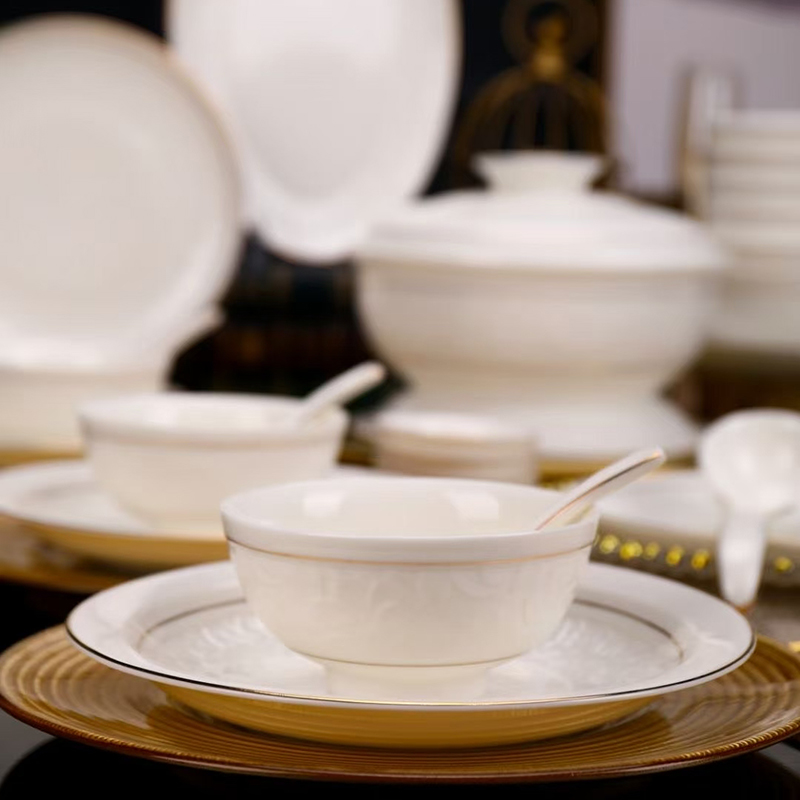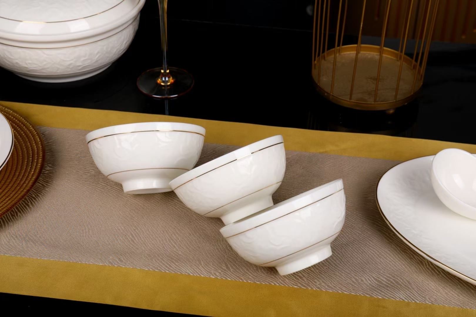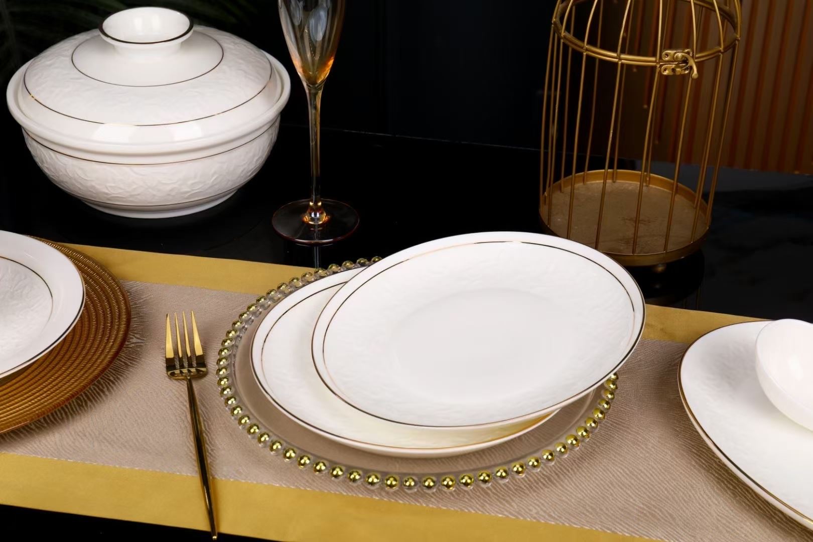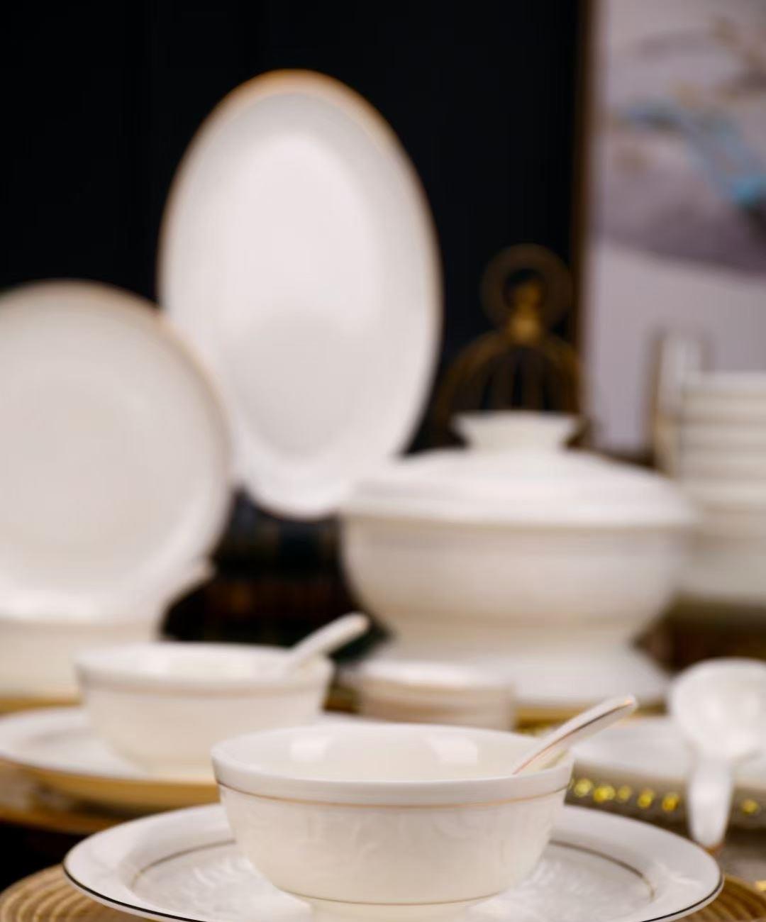 尾桥下窑羊脂玉瓷浮雕玉兰27头餐具套装白瓷描金年会节日伴手礼
