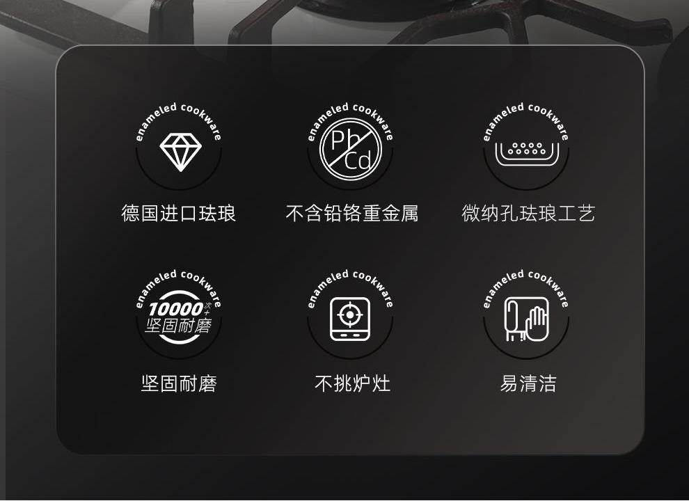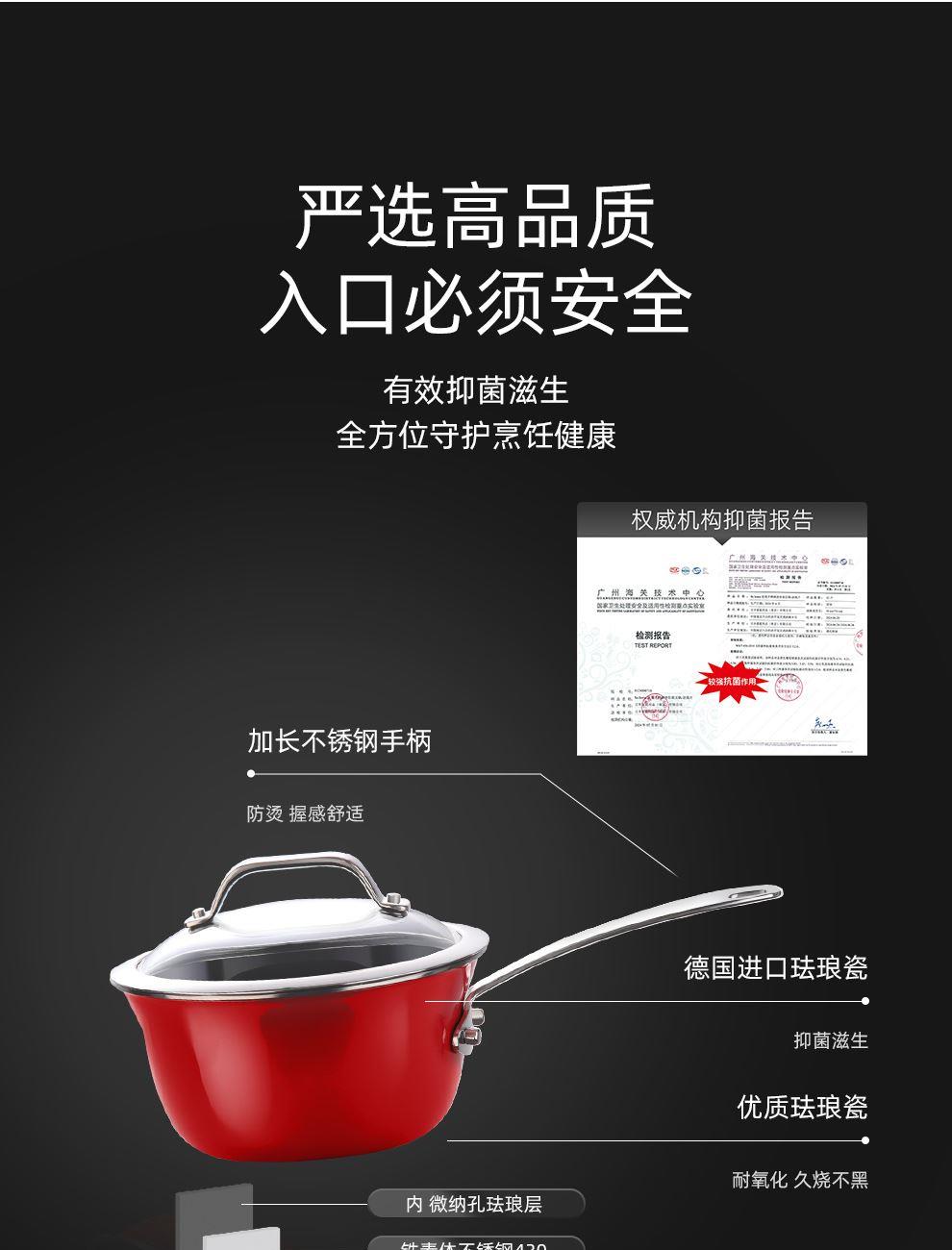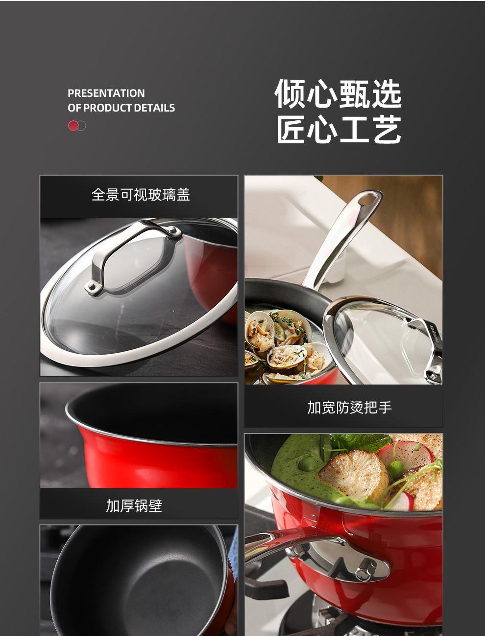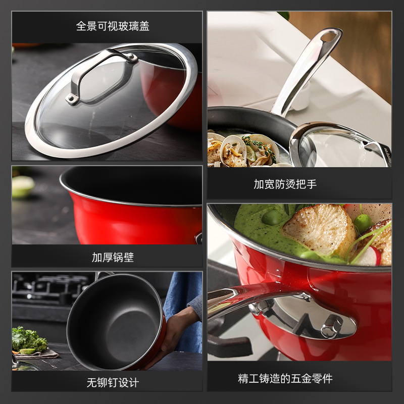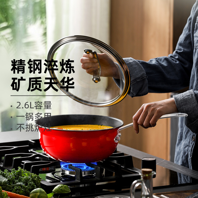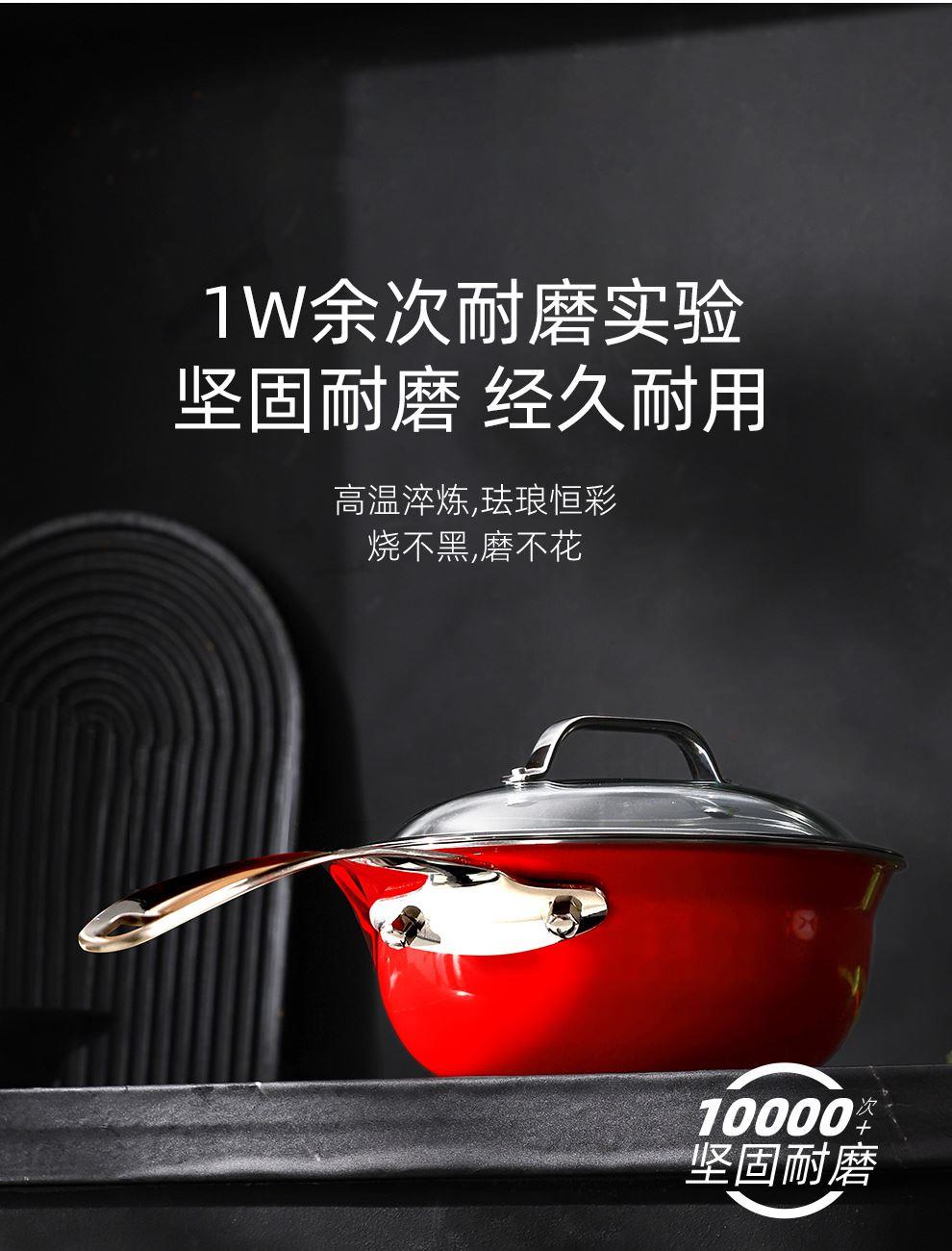 产品容量:2.6L 产品尺寸:410*255*160mm 产品颜色:红色 产品材质: 锅身:珐琅、400系列不锈钢 把手:201不锈钢 盖子:强化玻璃 1、德国进口珐琅与不锈钢,健康安心; 2、锅身一体成型,清洁无负,担一抹即净,可视化锁鲜锅盖,烹饪进程一目了然; 3、一锅多用,精煮善炖,全灶具通用,锅底不挑热源。