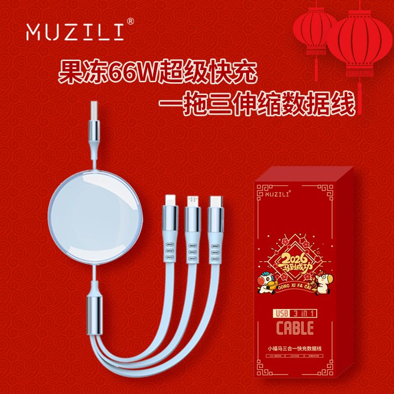MUZILI·小福马66W果冻超级快充一拖三伸缩数据线