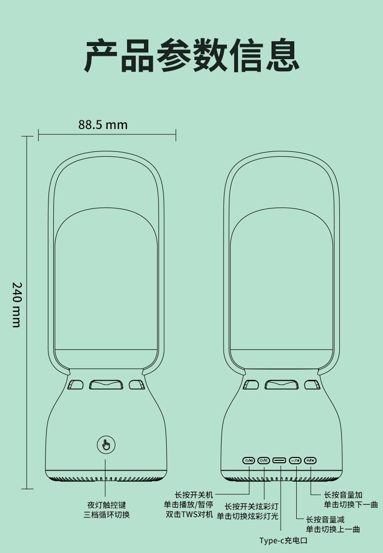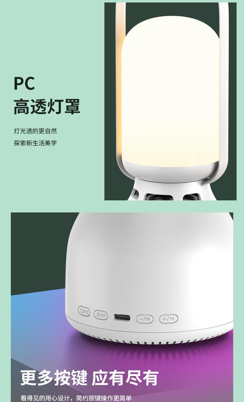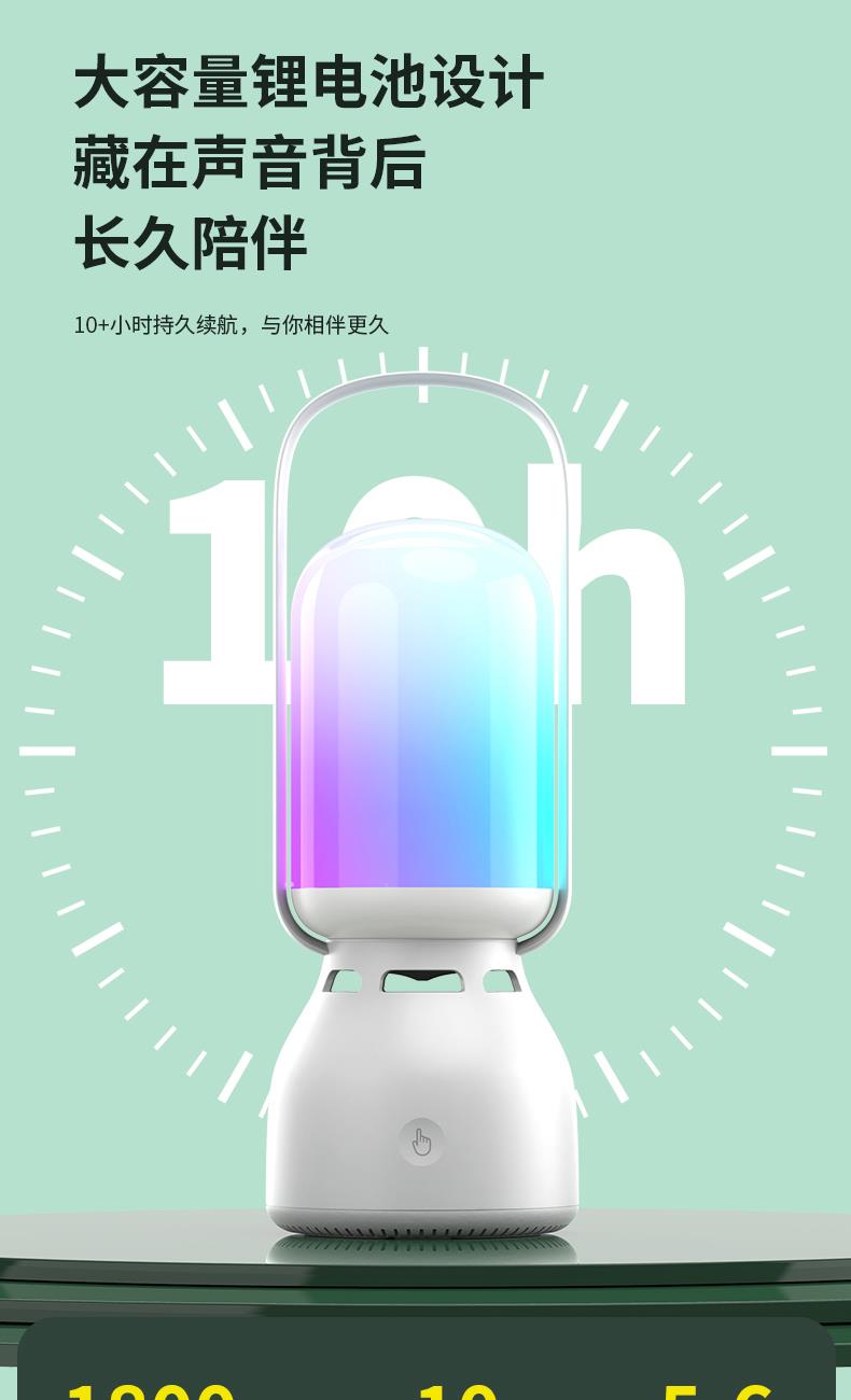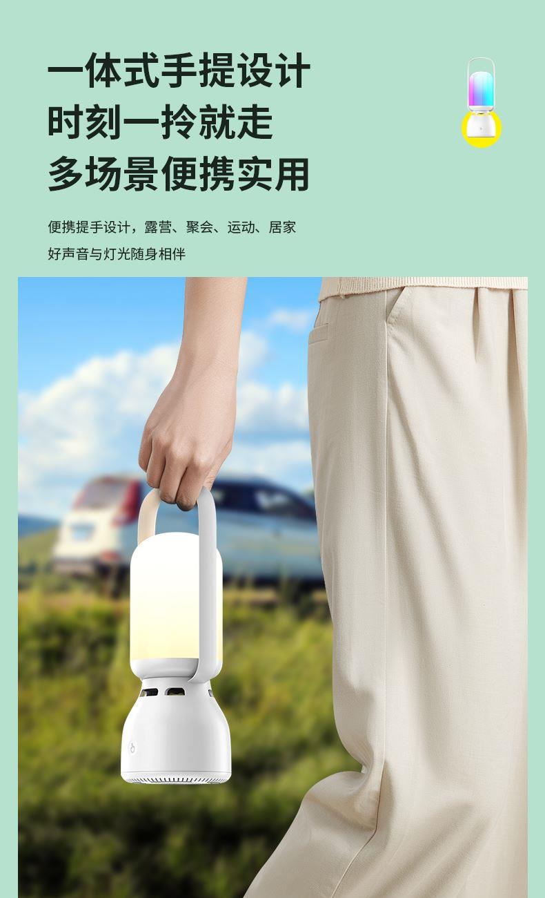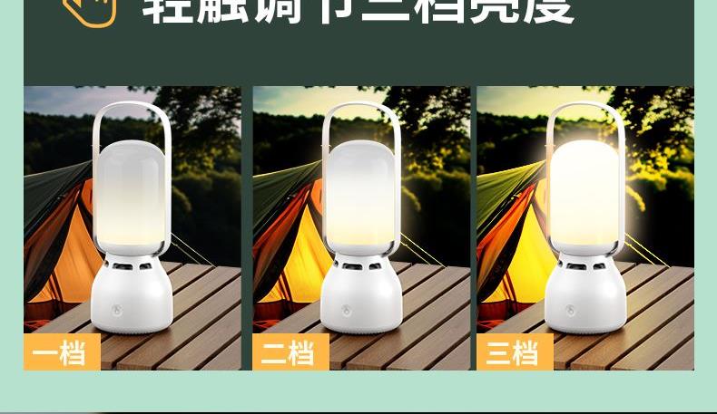 手提户外露营灯音箱 Z15 颜色:米色 白色 音响功率:5W 材质:ABS+PC 电池容量:1800毫安 尺寸:88.5*88.5*240mm 包装尺寸:90*90*250mm 包装:彩盒包装 【功能特点】: * 手提复古蓝牙音响续航久 * 幻彩光影:梦幻般的视觉盛宴 * 柔和暖光:温暖柔和的灯光设计 * 触控调光:三档亮度调节