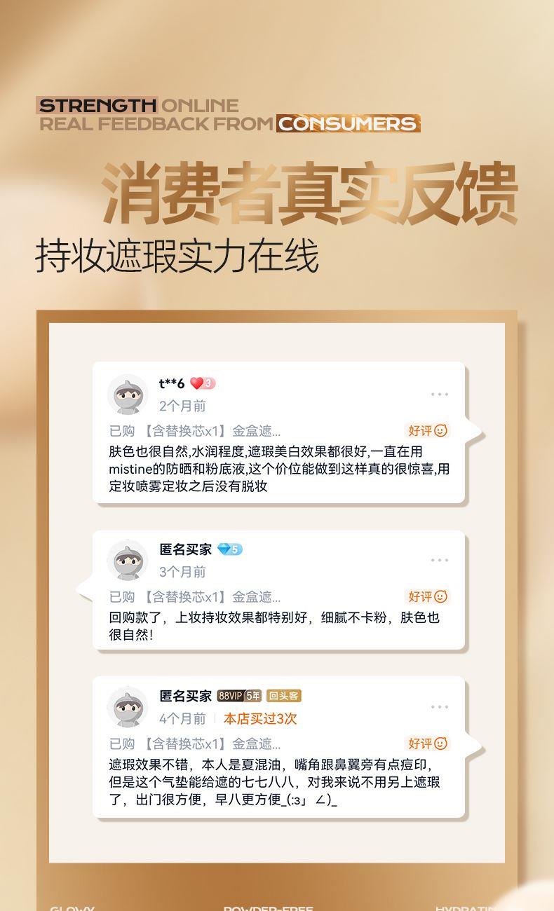 蜜丝婷柔光隐瑕海绵金气垫气垫粉底霜LF100透亮瓷白色 礼品已成功加入PPT!