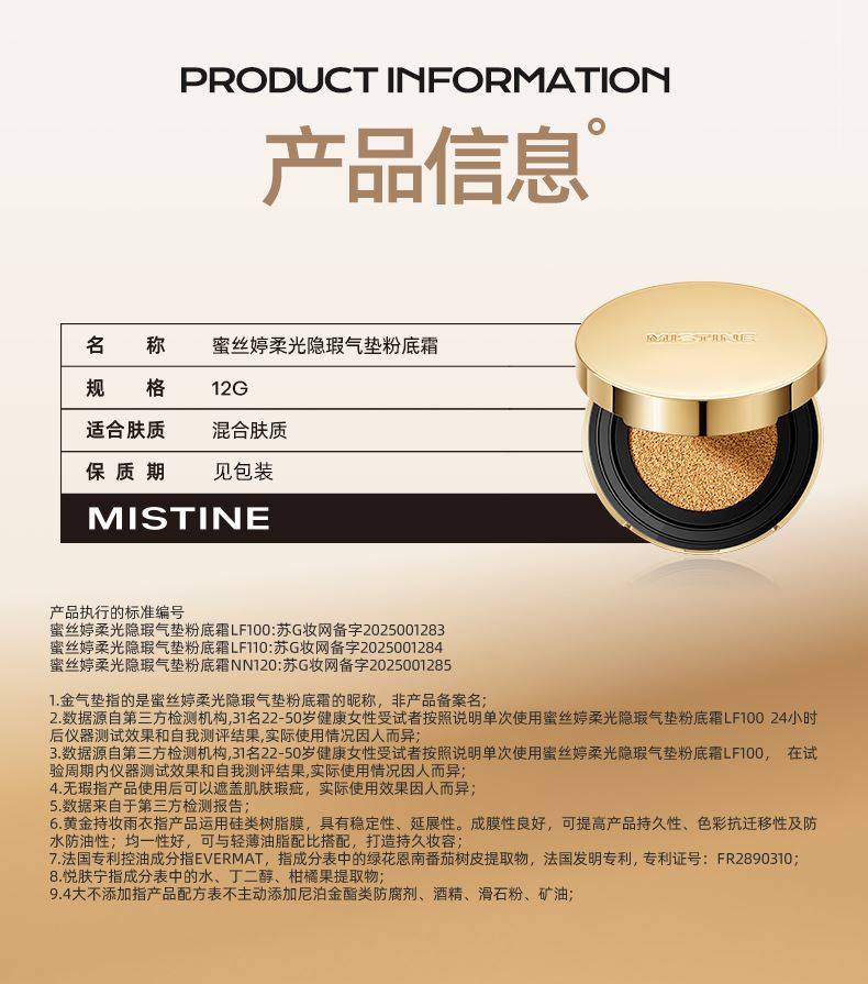 蜜丝婷柔光隐瑕海绵金气垫气垫粉底霜LF100透亮瓷白色 蜜丝婷柔光隐瑕海绵金气垫气垫粉底霜LF100透亮瓷白色