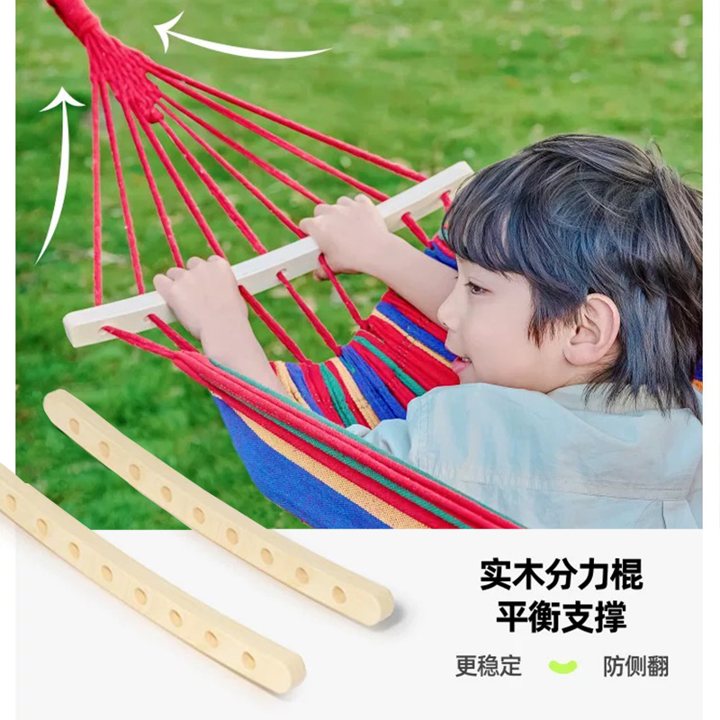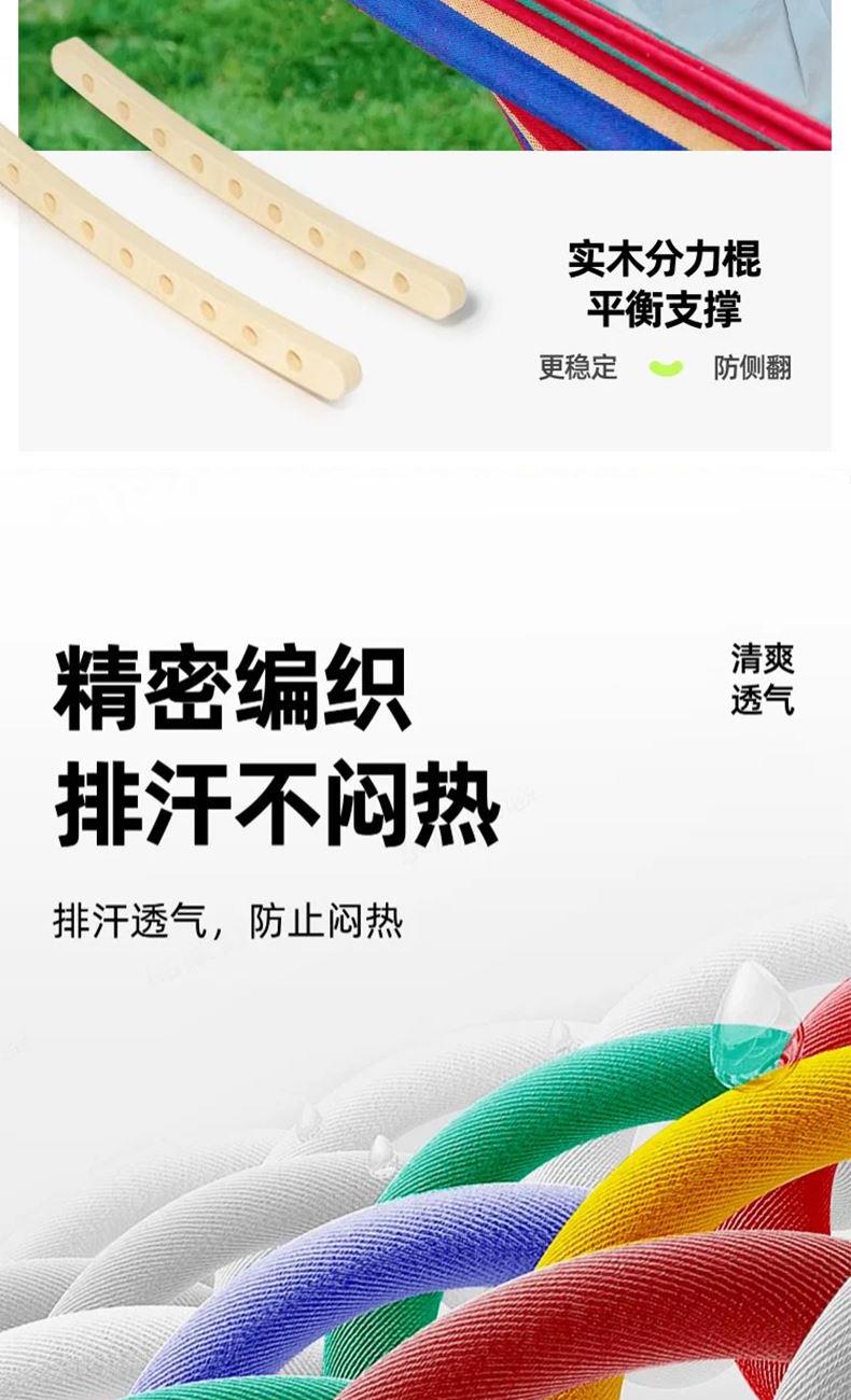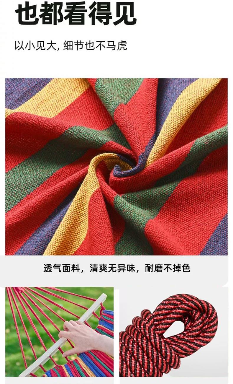 材质 棉帆布、木棍 成分 61.9%聚酯纤维、29.7%棉、6.9%粘纤、1.5%锦纶 颜色 彩虹条 尺寸 帆布190*80cm、木棍长40cm 重量 0.88kg 包装 40*25*10cm 1/个 配件 收纳袋*1 绑绳*2 新料环保棉帆布,不掉毛,不起球,不褪色,无异味防 侧翻月牙棒设计,稳定性好,舒适侧卧 加粗绳结,承重300+ 两端木制捋线防缠绕设计,加粗环保