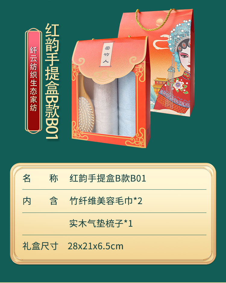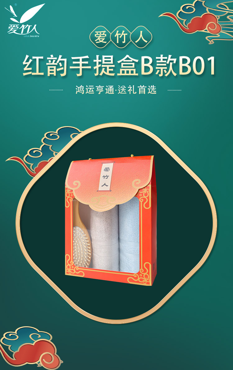 爱竹人红韵礼盒竹纤维毛巾梳子3件套B01