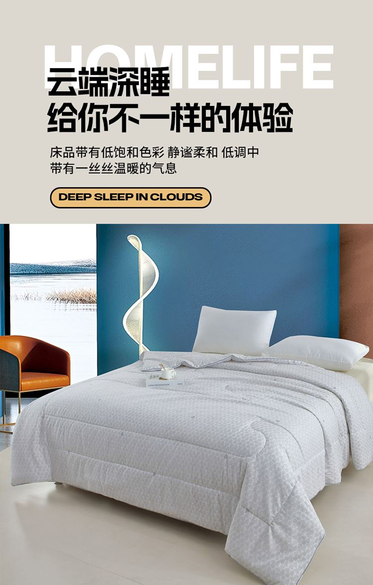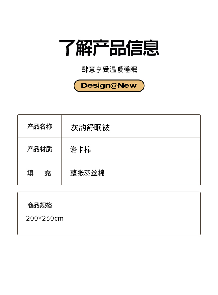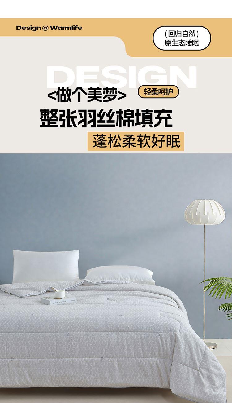 面料材质:洛卡棉 填 充:羽丝棉 产品规格:200*230cm 克 重:2000g 产品包装:精美礼盒 包装尺寸:50*40*20cm 1.洛卡棉舒适度非常好,亲肤性也较为优良,触感比较柔软。 2.洛卡棉拥有色牢度较高、抗变形性较好的性能。 3.洛卡棉表面绒毛均匀,手感柔软。