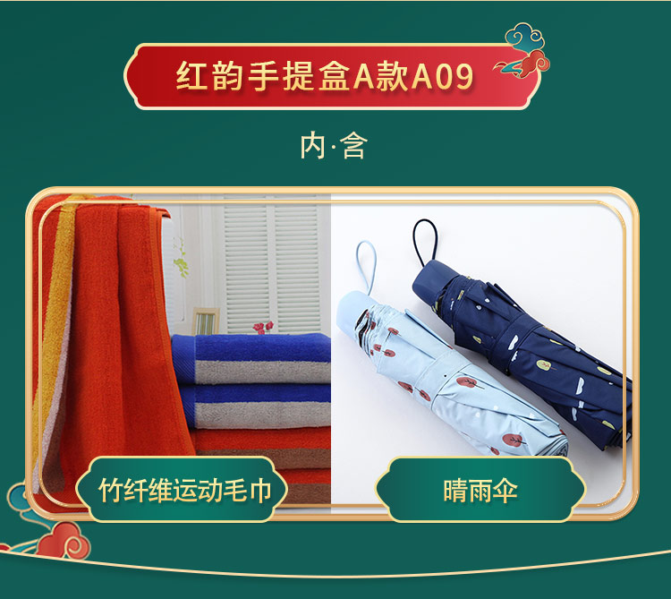 爱竹人红韵礼盒运动毛巾晴雨伞2件套A09