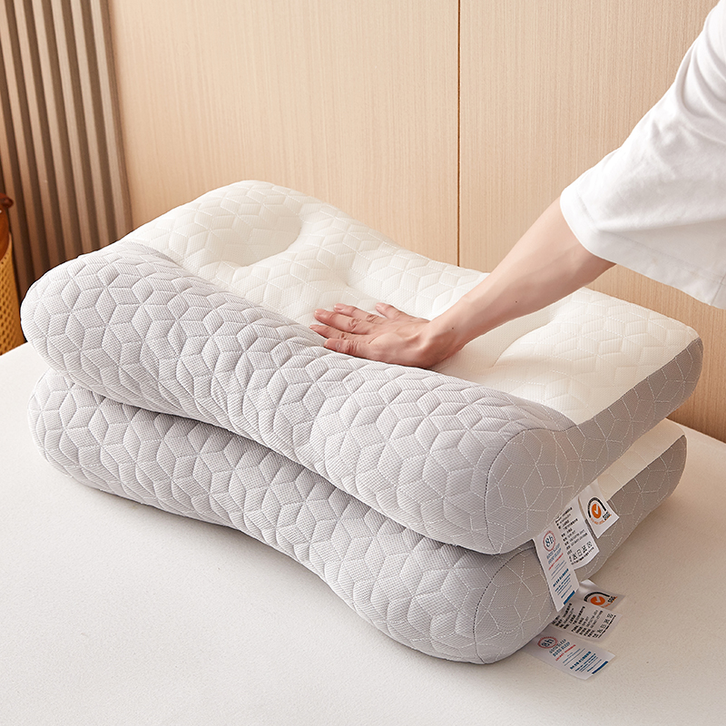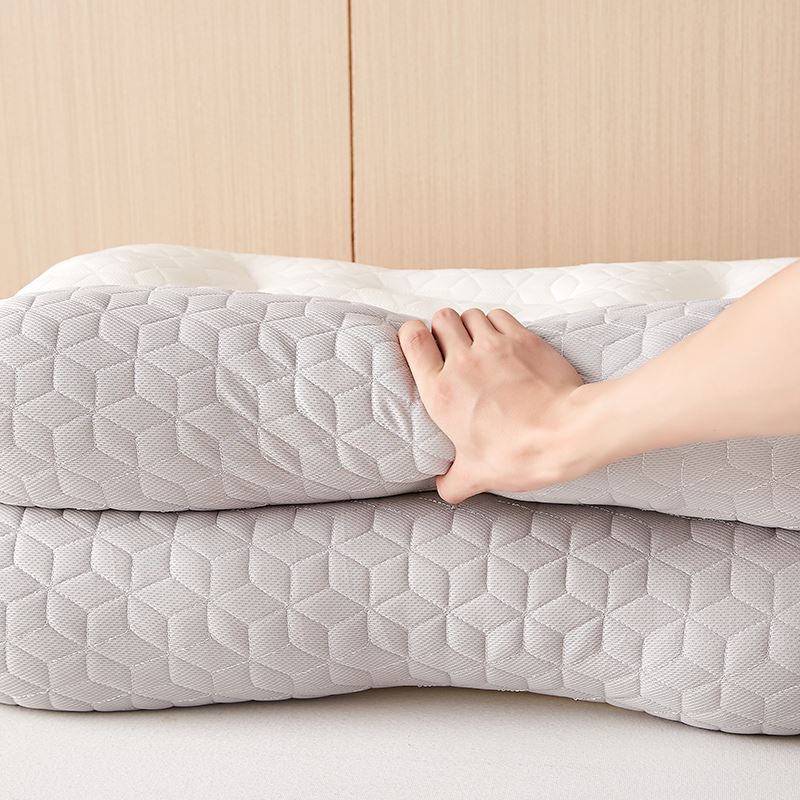 枕套:牛奶针织棉 内枕套:天然乳胶薄片 枕芯:高密度记忆海绵 甄选牛奶针织棉,手感细腻,亲肤透气,立体感较好。面料里层缝睡觉薄片! 高弹性记忆海绵填充,快速回探,不易坍塌 局部精美刺绣工艺,简约有格调