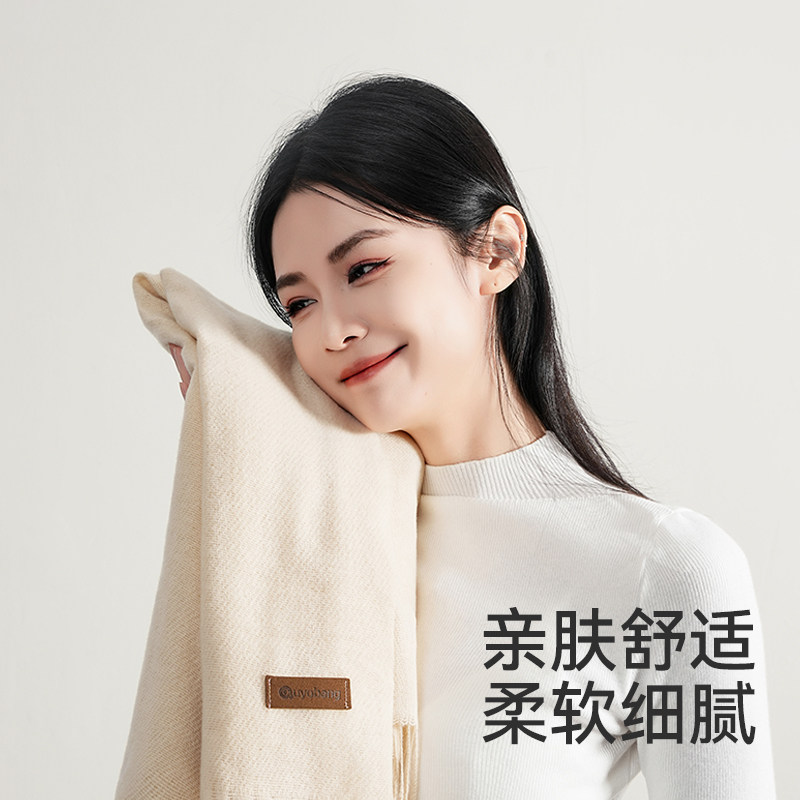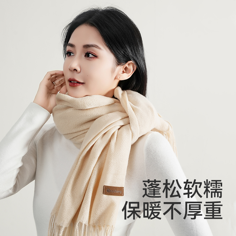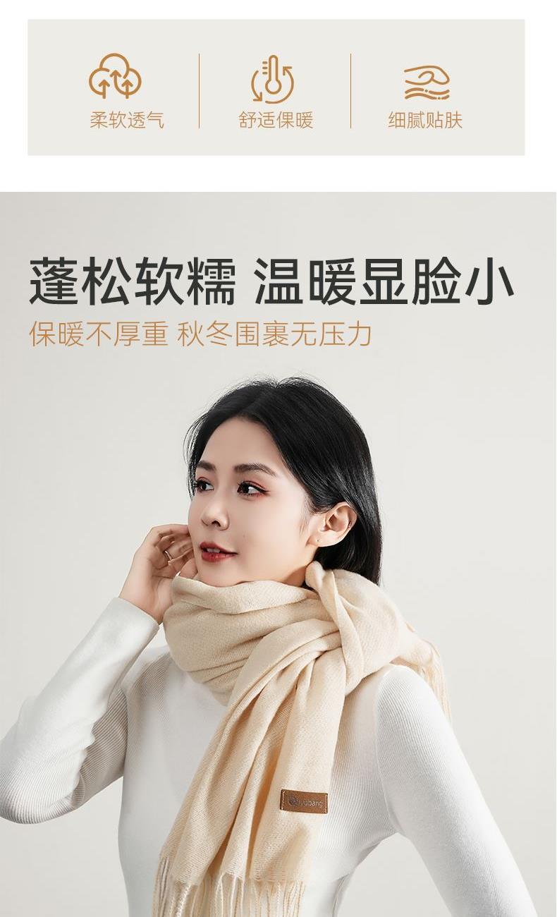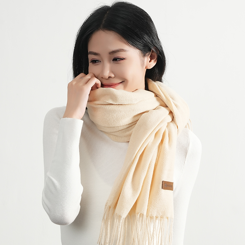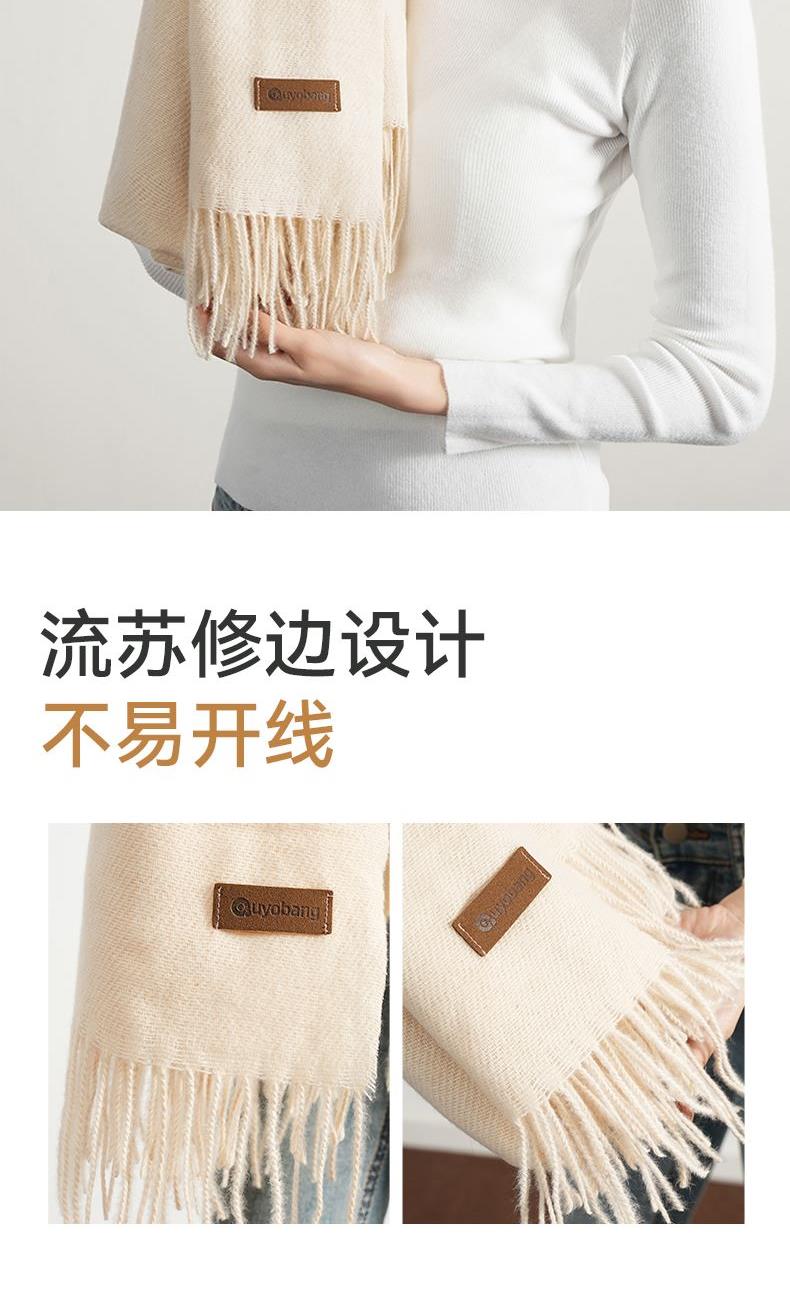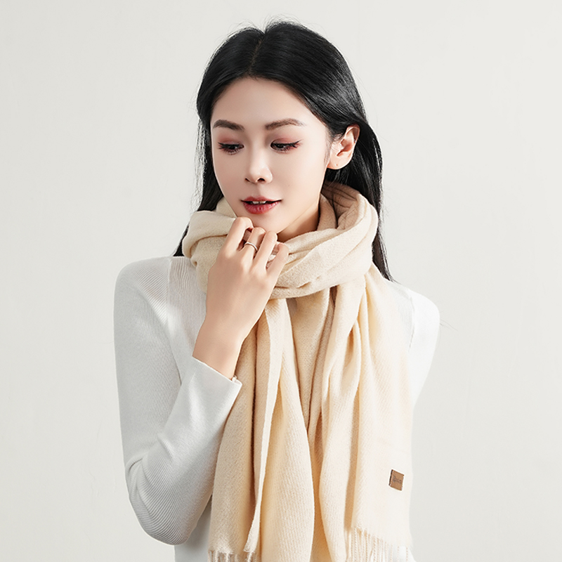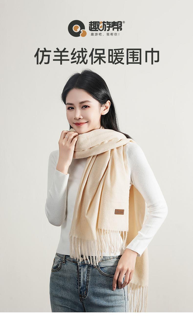 趣游帮米黄色加厚仿羊绒保暖围巾(S-5002)
