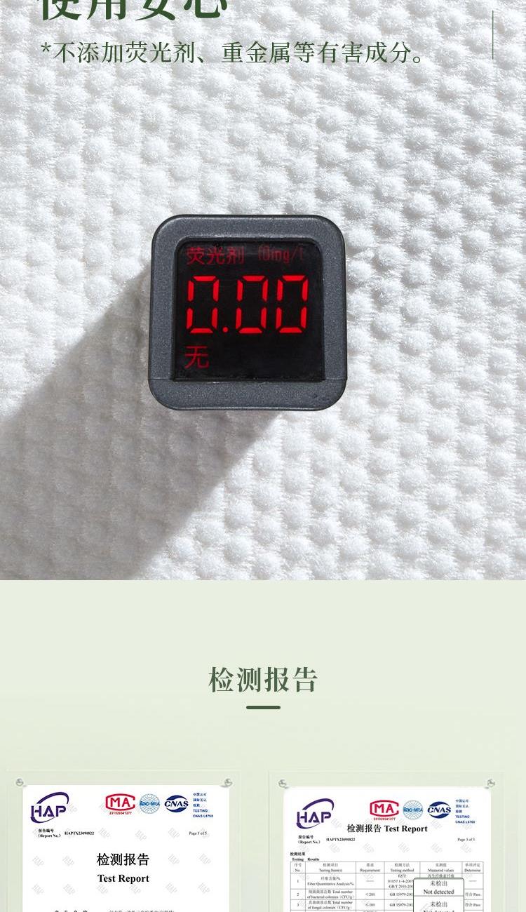 湿敷时不易掉絮,可重复利用擦拭餐具等 。