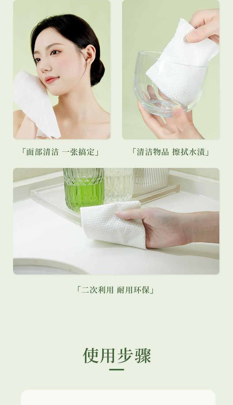 适用于面部清洁、卸妆、擦拭家具或餐具等场景,材质绵柔不刺激皮肤 。