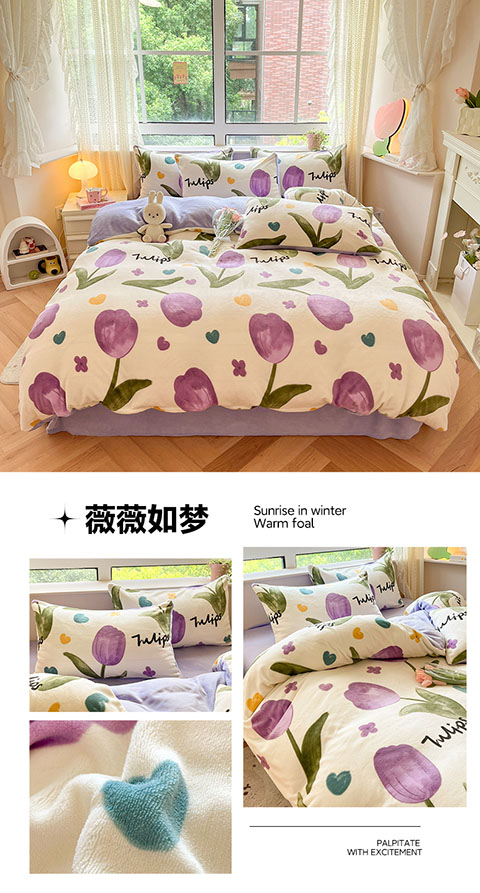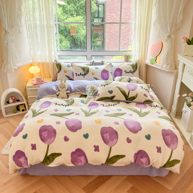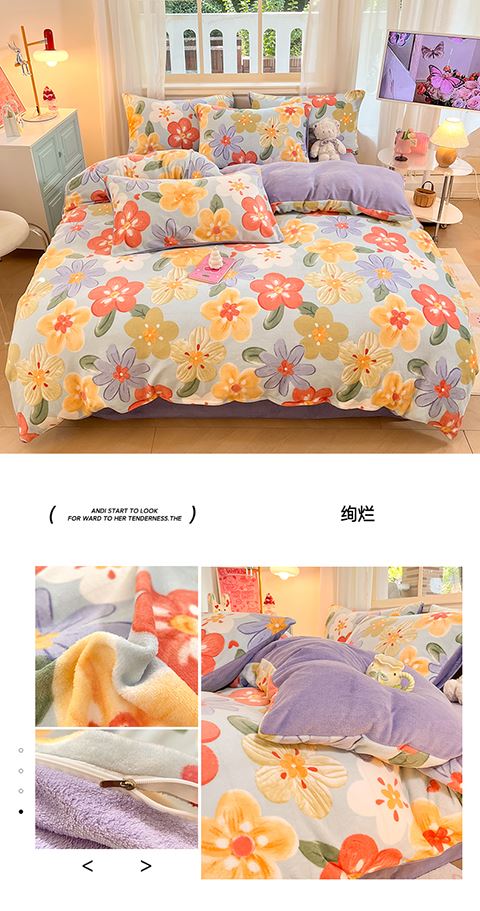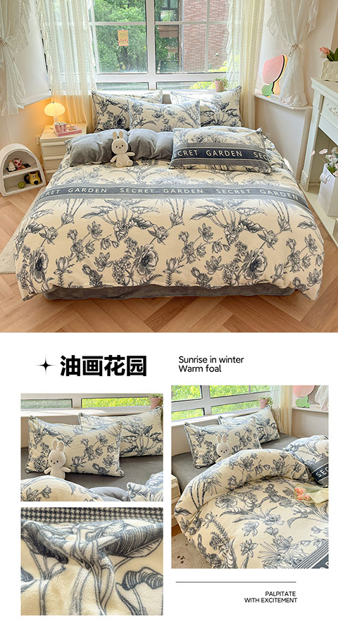亿瞬间牛奶绒印花四件套