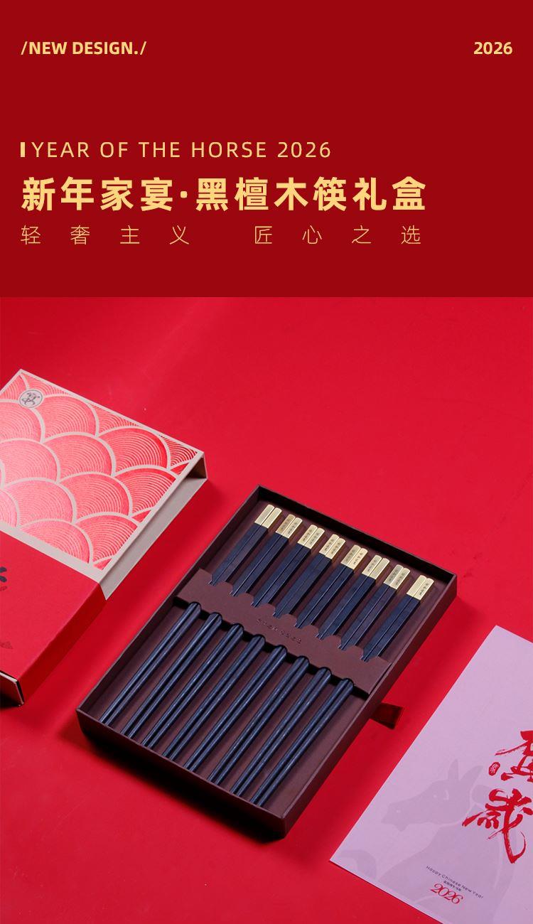 新春大宴贺岁-黑檀木8双雅礼商务餐筷礼盒套装新年创意礼品