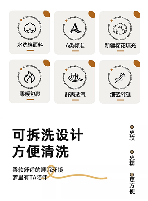 舒适亲肤面料,享受好眠。面料质地更为厚实,手感也非常柔软。安全更放心,更安全的接触屏障,对肌肤更友好,放心亲密接触,使用安心。棉花填充加超细超柔纤维,柔软蓬松不压身,被芯填充整张超细超柔纤维,睡不扁的轻暖蓬松,躺下,就被软到了~ 面料:水洗棉 工艺: 活套设计被套可拆卸 填充:棉花+超细超柔纤维 规格:200*230cm 6斤