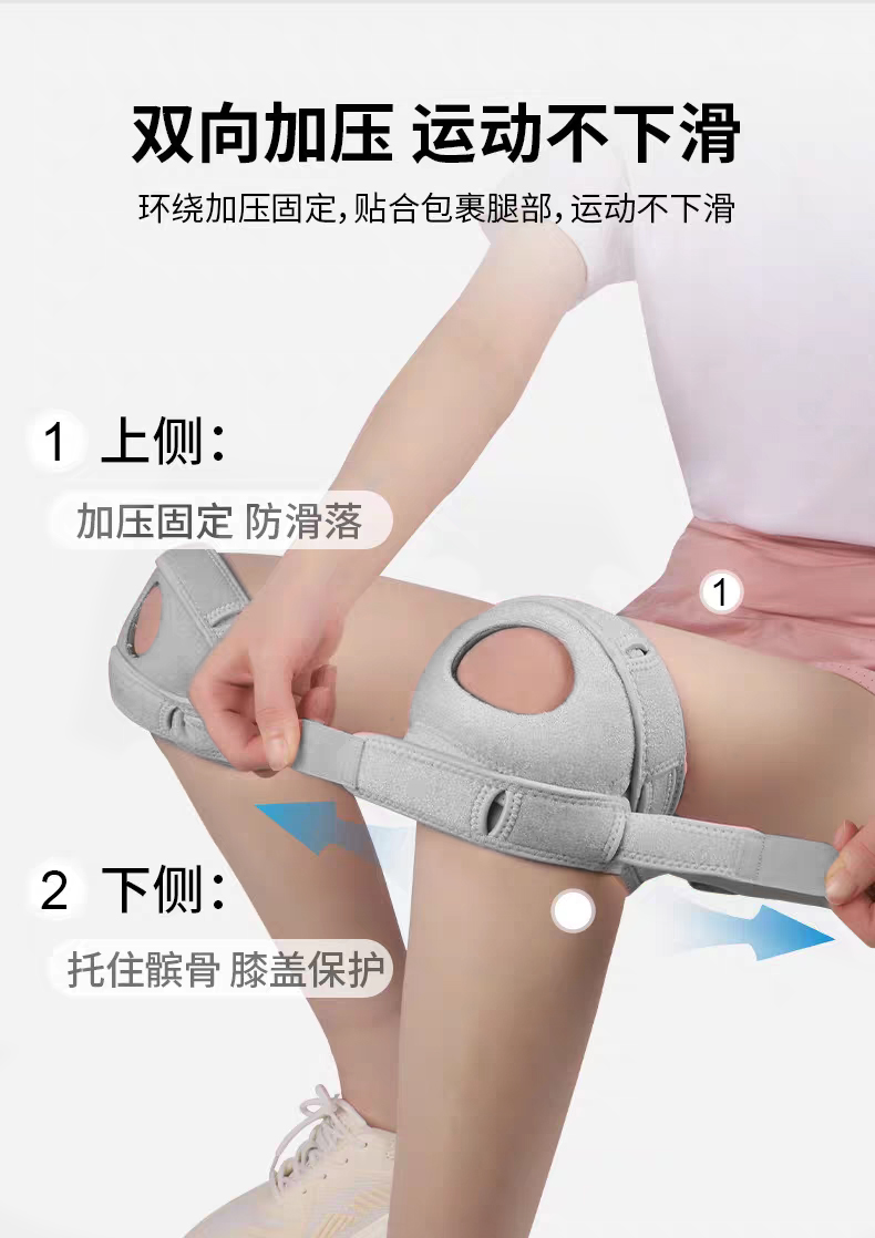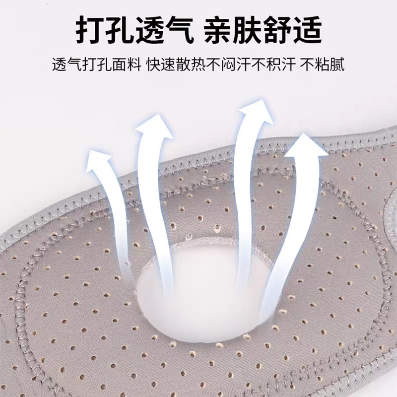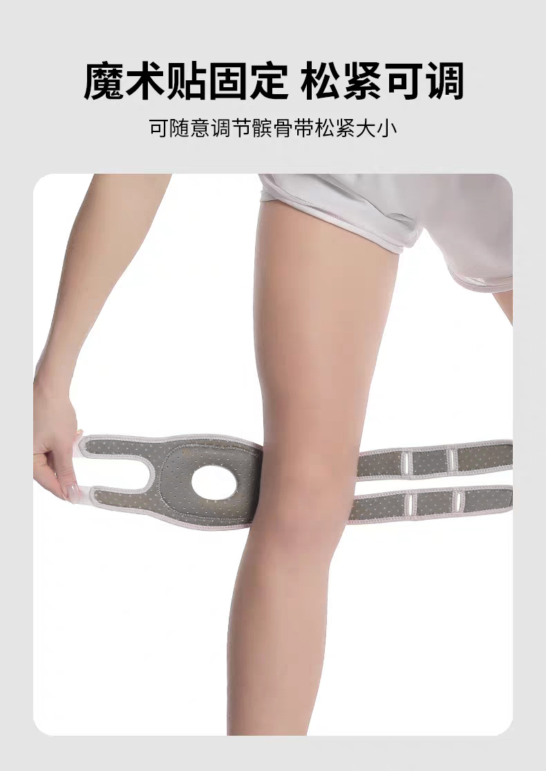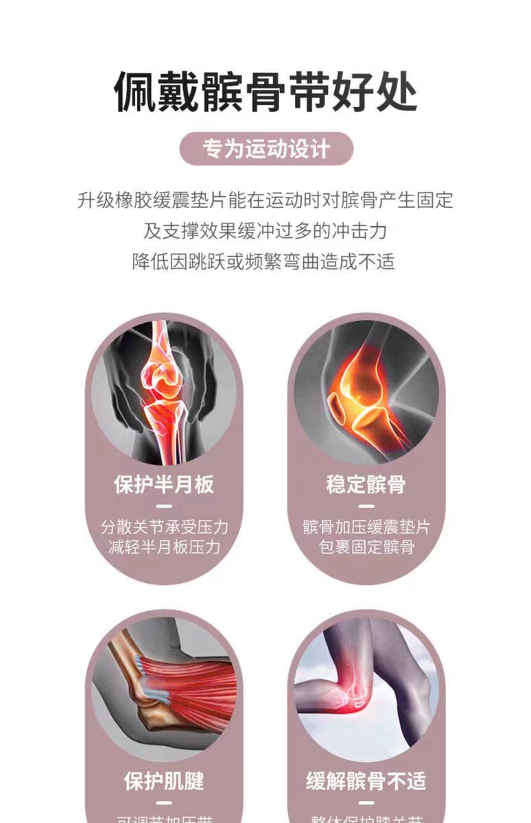 材质 硅胶圈 ok布 颜色 浅灰色 尺寸 53*10cm 重量 0.1kg 专为运动设计 升级硅胶缓震垫片能在运动时对膑骨产生固定 支撑效果强,能缓冲过多的冲击力 降低因跳跃或频繁弯曲造成不适