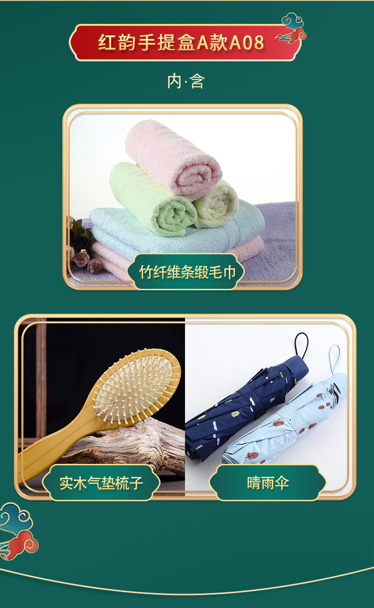 内含: 竹纤维条缎毛巾*1 实木气垫梳子*1 晴雨伞*1 爱竹人竹纤维毛巾 实木气垫梳 雨伞 实用 美观 高颜值 开门红 节日礼品 随手礼 劳保 福利 积分兑换 一件代发
