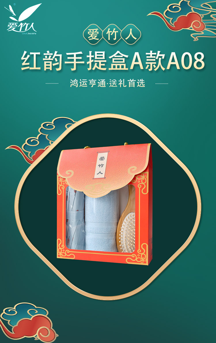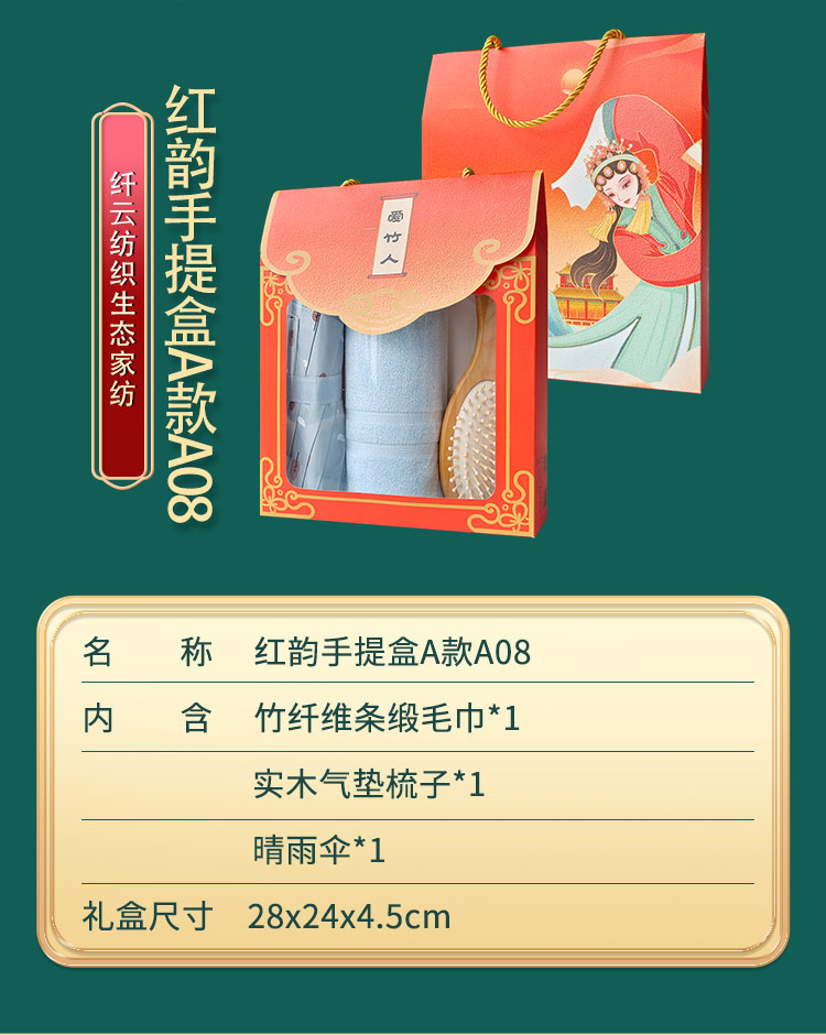 爱竹人红韵礼盒毛巾梳子晴雨伞3件套A08