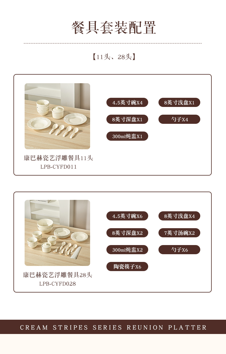 康巴赫瓷艺浮雕餐具11头LPB-CYFD011 康巴赫瓷艺浮雕餐具11头LPB-CYFD011