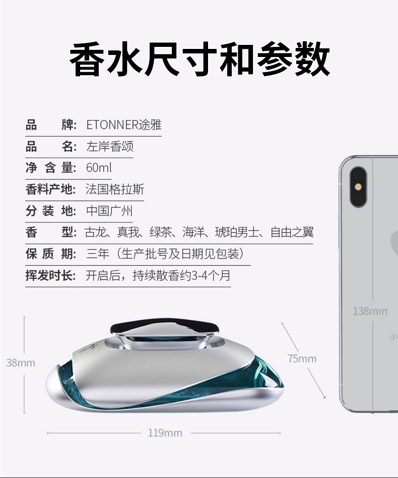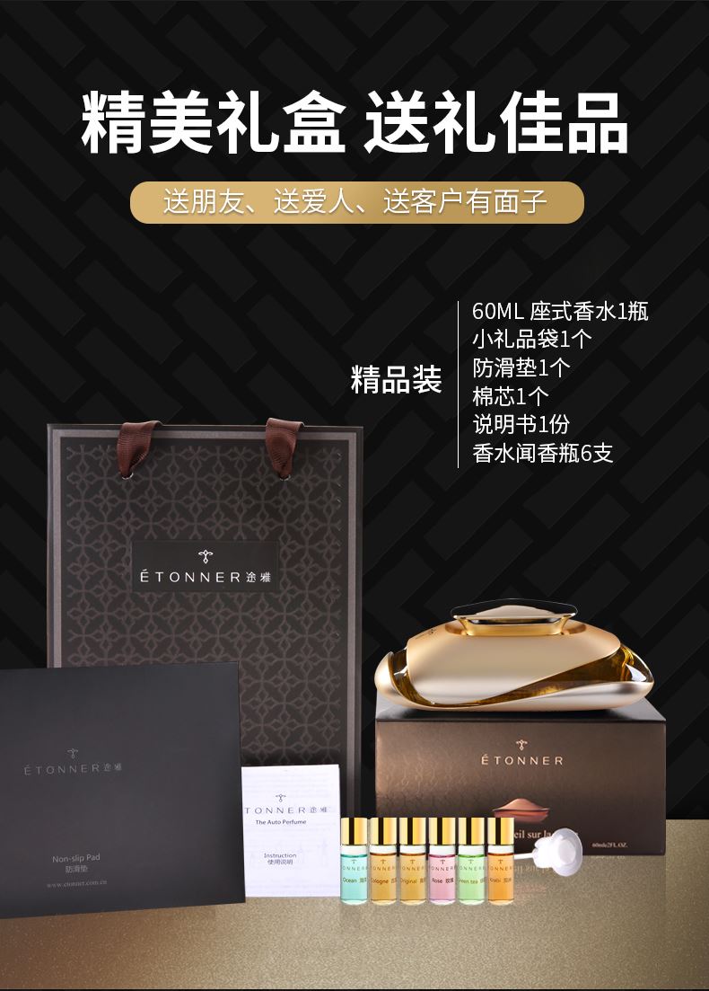 锌合香水座+60ML香水+纳米防滑垫+棉芯 1个+精美礼盒手袋