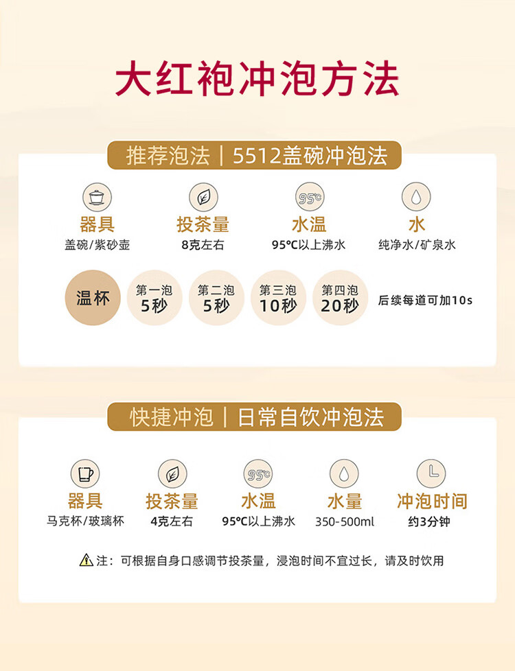 - 产地与工艺:源自福建武夷山原产地,采用传统焙火工艺制作,保证地道岩茶的风味特质,是正宗武夷大红袍的典型代表。