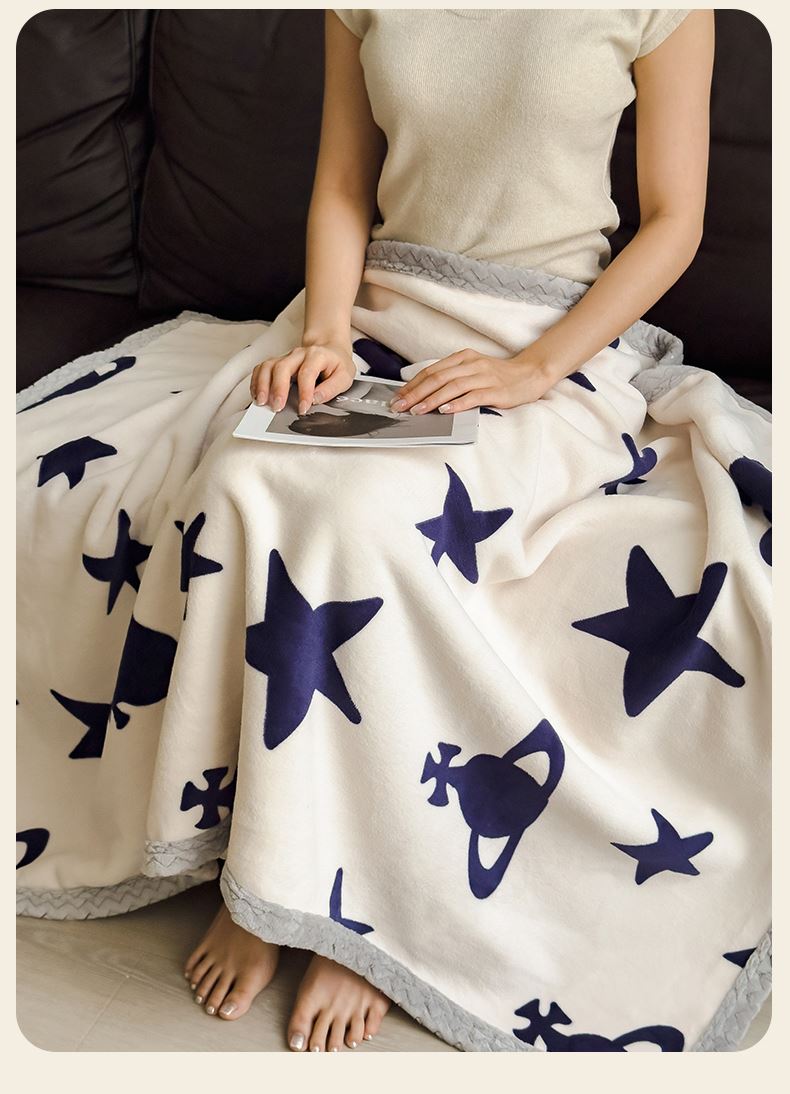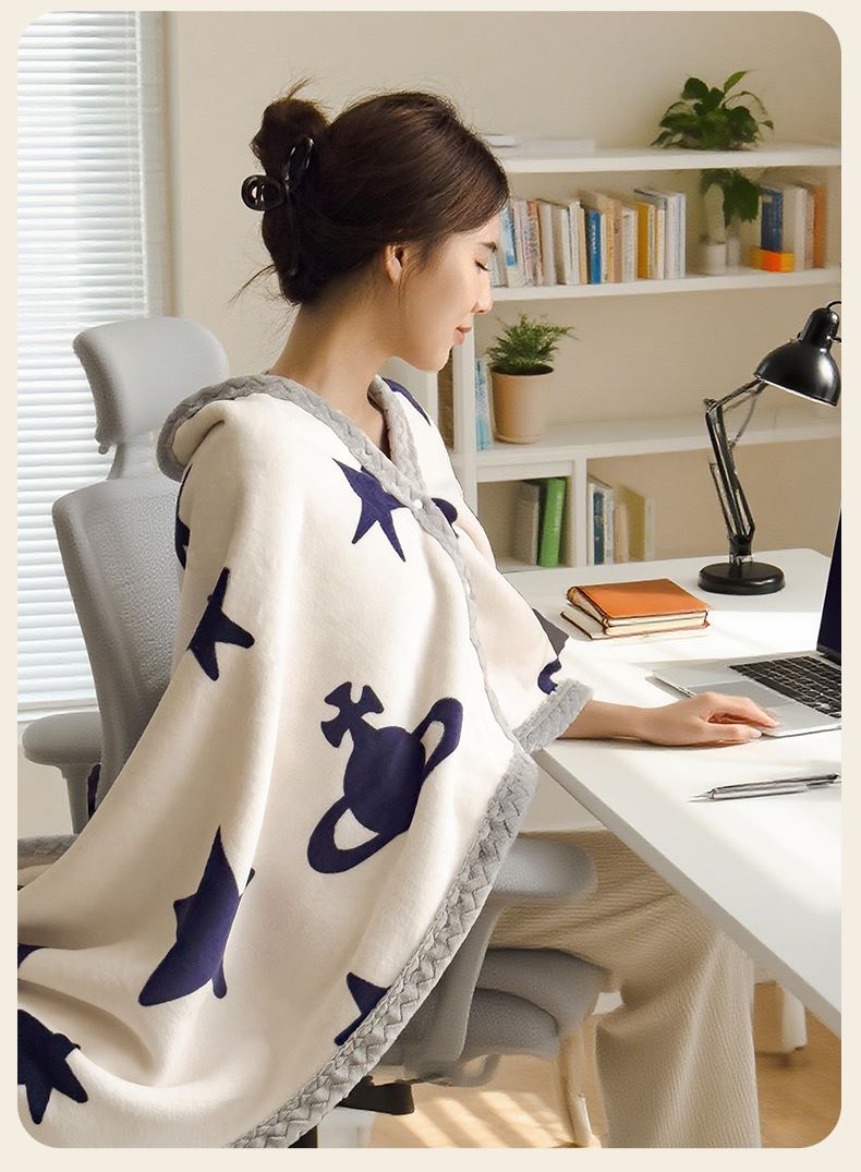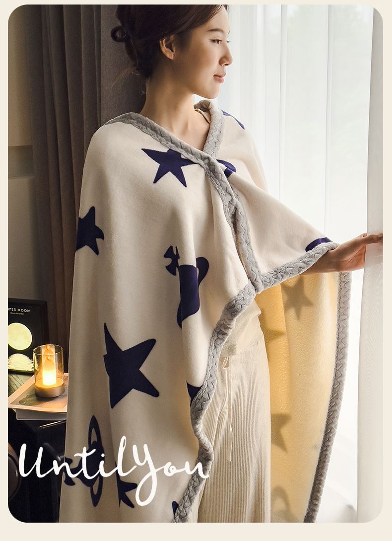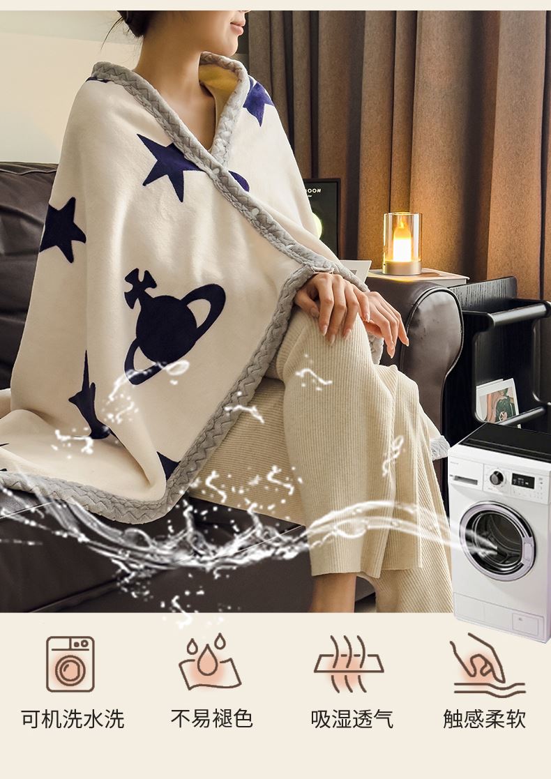 面料:舒棉绒+羊羔绒(聚酯纤维复合型) 规格:75cm*130cm 温柔拥抱爱不释手的软糯 毯子不只是毯子,百搭造型,可将毯子披在肩上可以是儿童学习写字毯等,小尺寸纽扣设计更方便。
