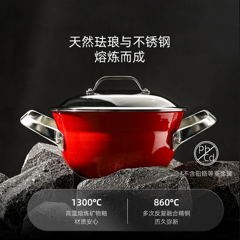 so.home聚宝盆珐琅双耳汤锅R414-20B