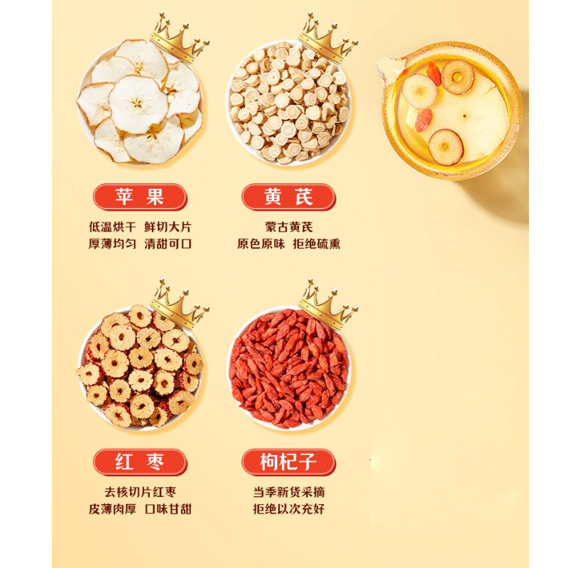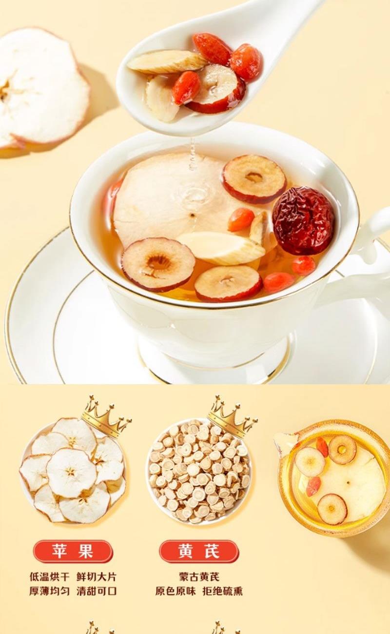 健康方面,苹果富含维生素与膳食纤维,黄芪含皂苷与多糖,尤其适合加班熬夜人群;