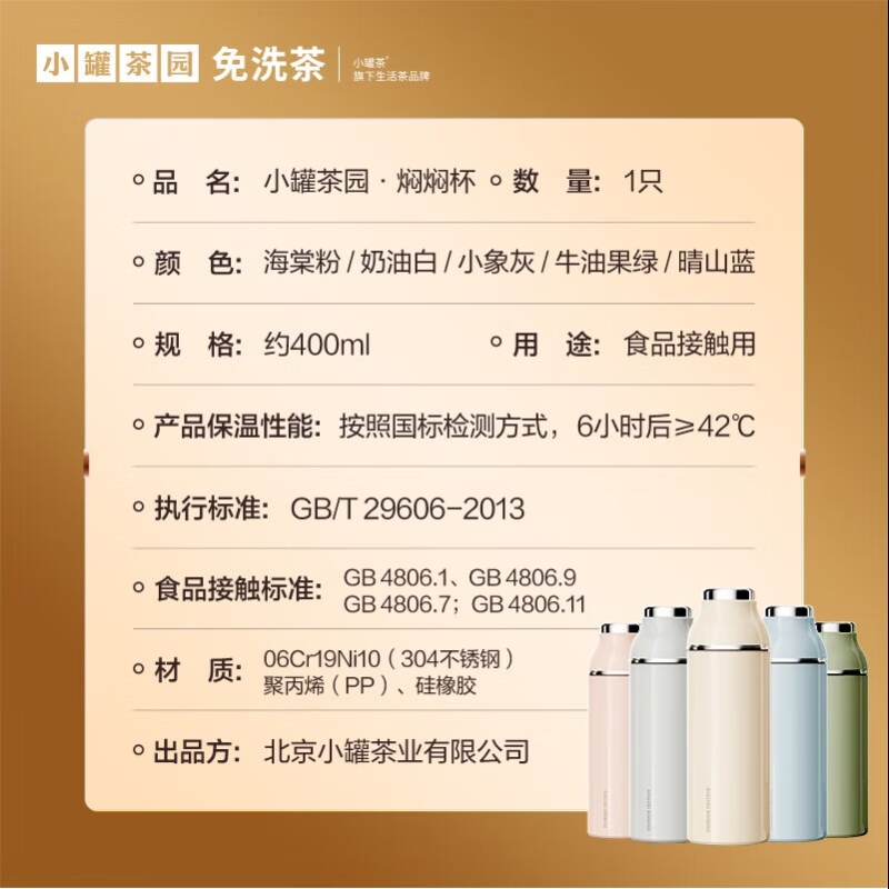 小罐茶-304焖焖泡茶叶具保温水杯400ml食品级不锈钢礼盒