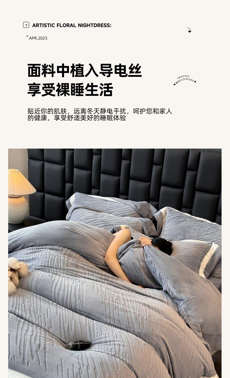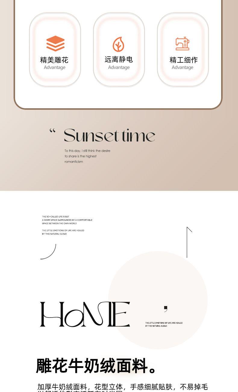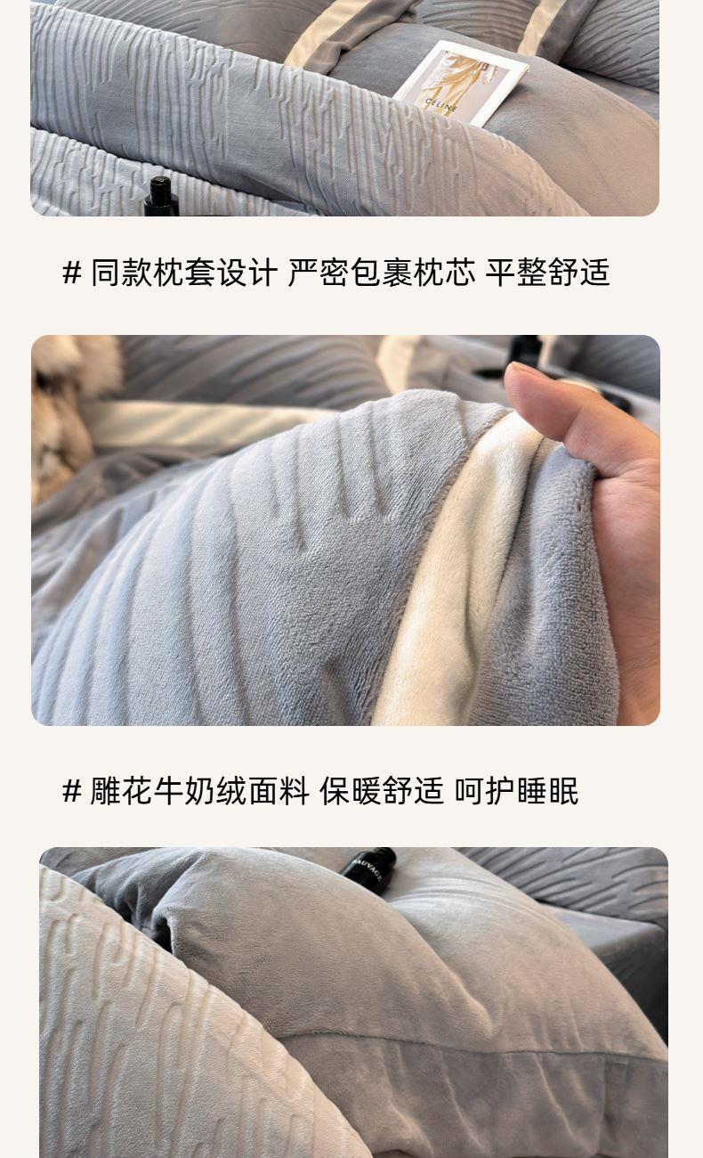 被套:200*230cm 床单:230*250cm 枕套:48*74cm*2 面料:牛奶绒 产品包装:精美礼盒 包装尺寸:50*40*20cm 特点:牛奶绒面料,充分吸收汗气蒸发产生的热量,舒适透气,精美大方,绒感细腻,呵护您娇嫩肌肤新型植绒技术,绒毛结构丰盈紧实,不易掉毛告别掉毛烦恼。