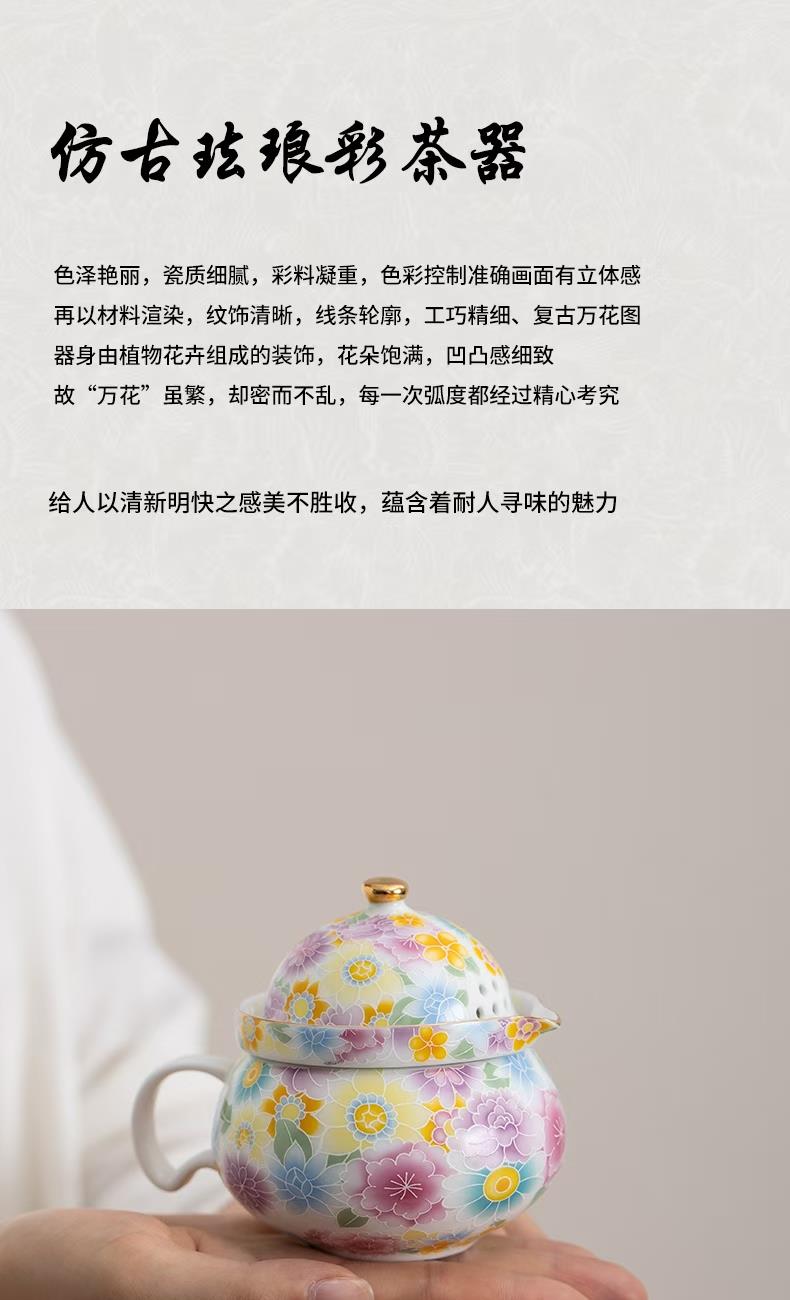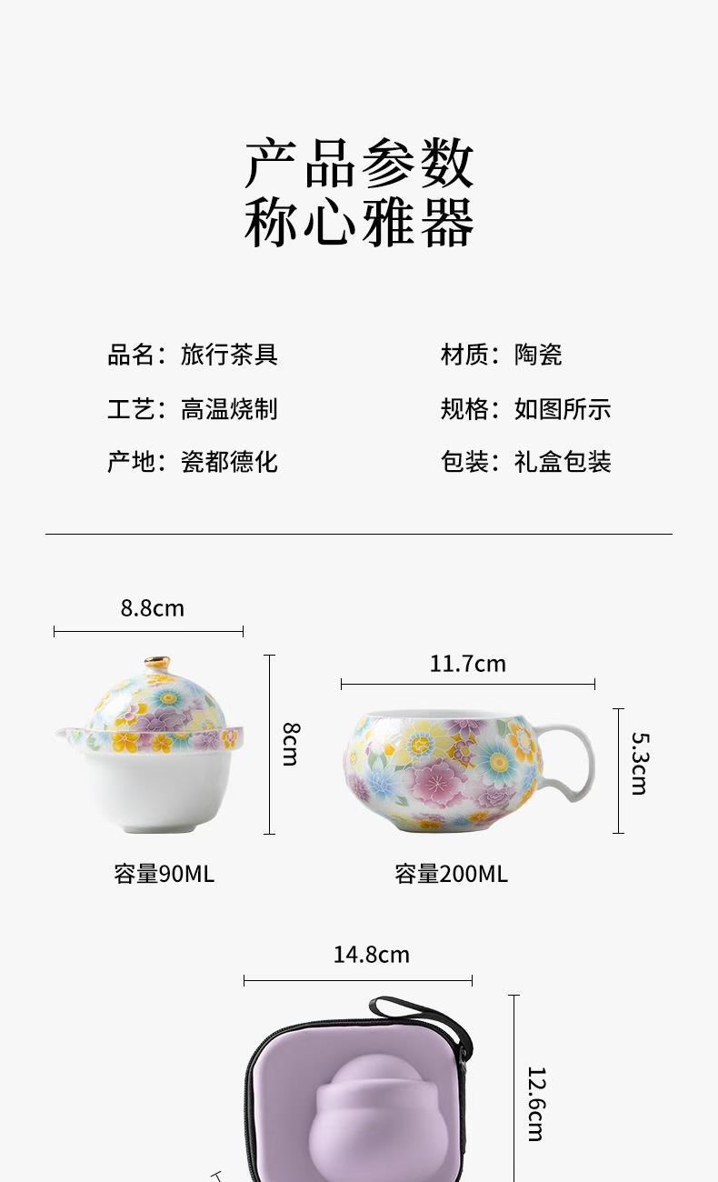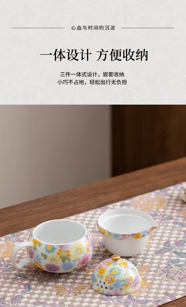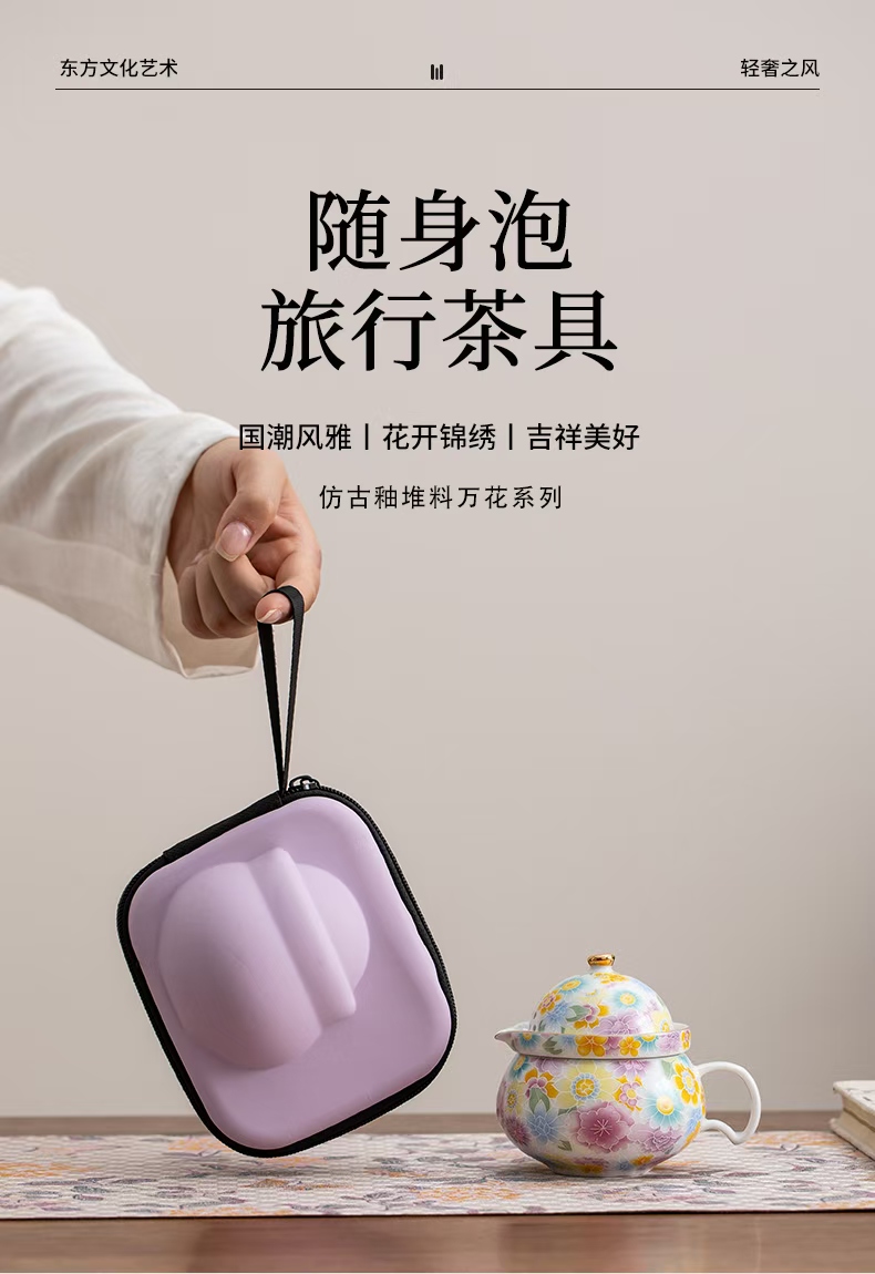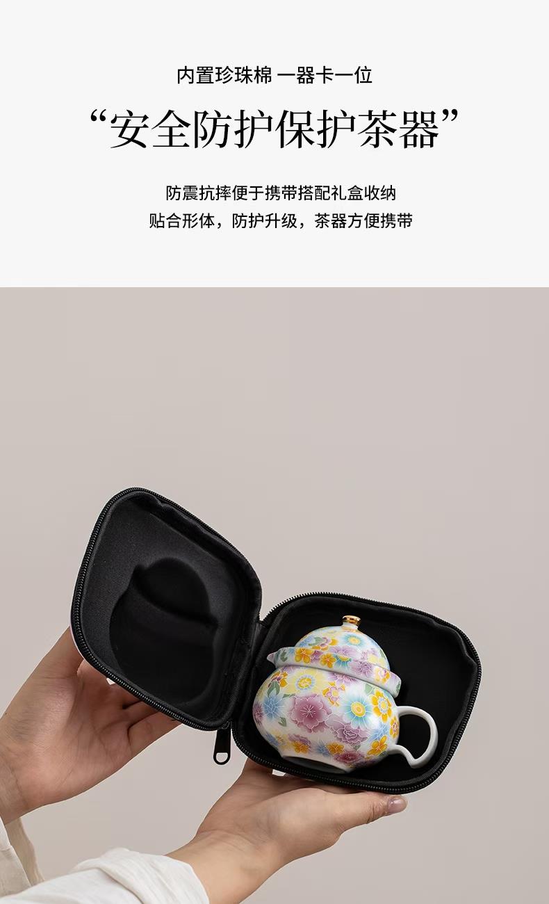 尾桥下窑陶瓷珐琅彩万花随手泡旅行茶具套装开业伴手礼会议赠品
