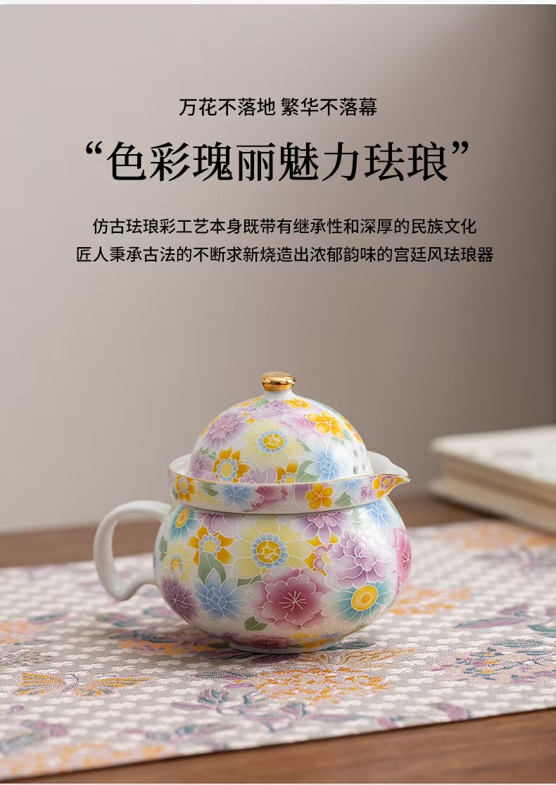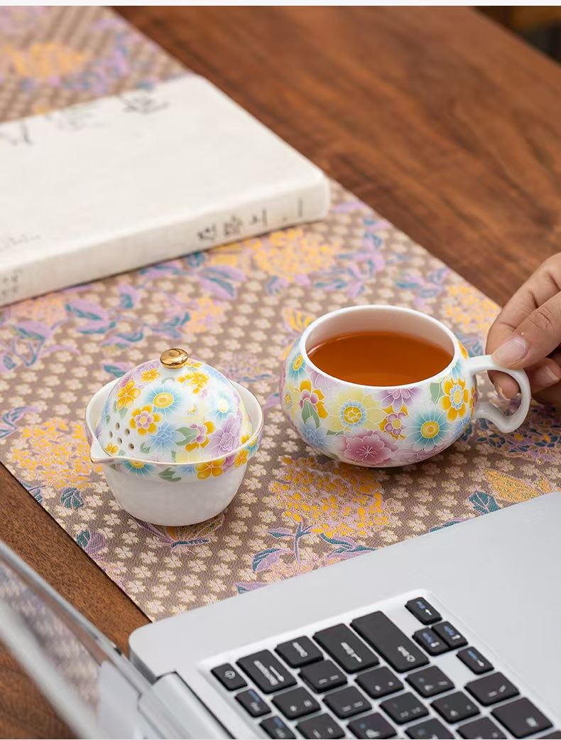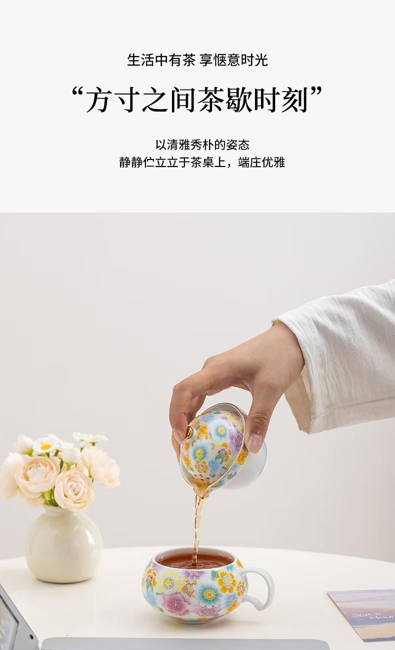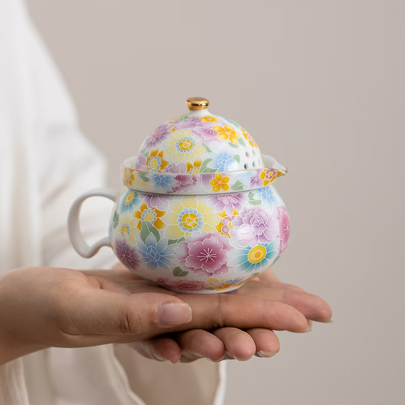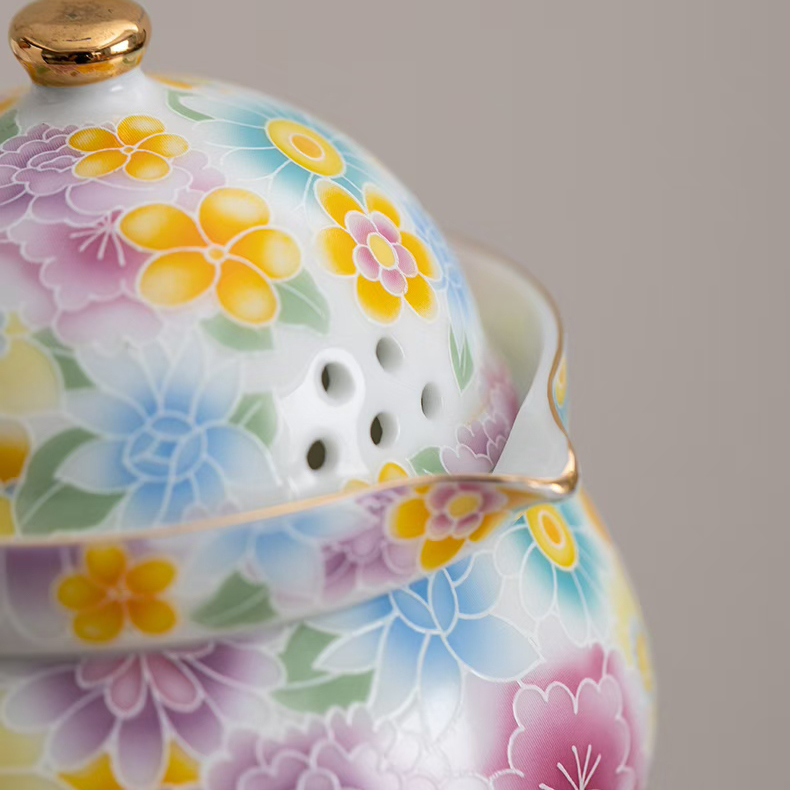 尾桥下窑陶瓷珐琅彩万花随手泡旅行茶具套装开业伴手礼会议赠品