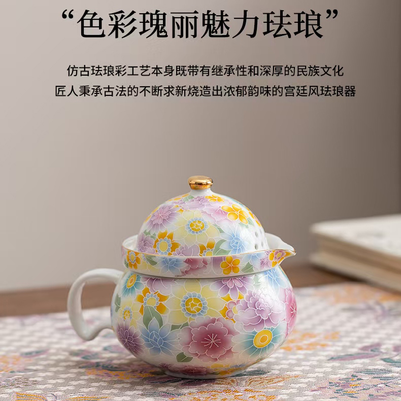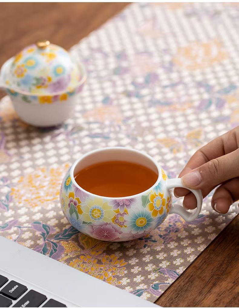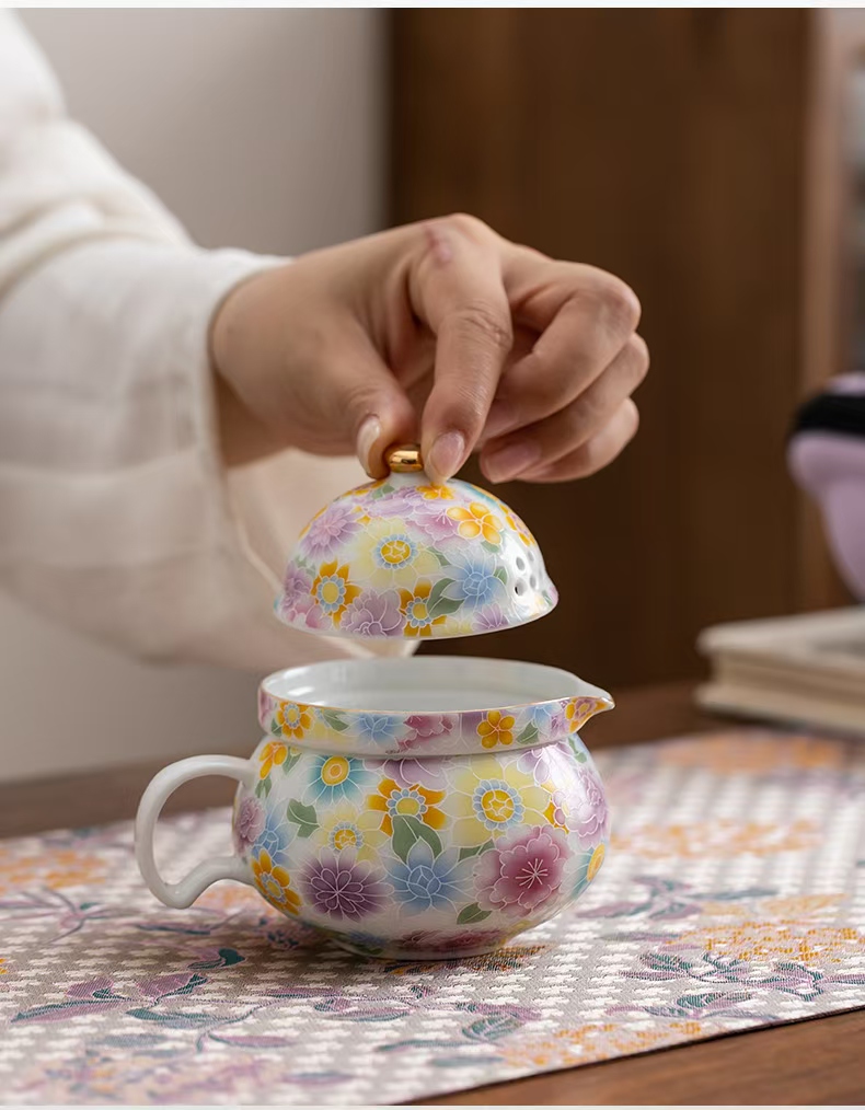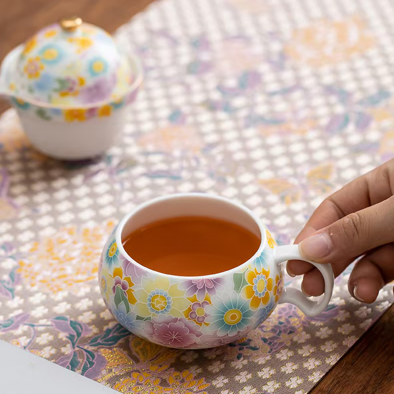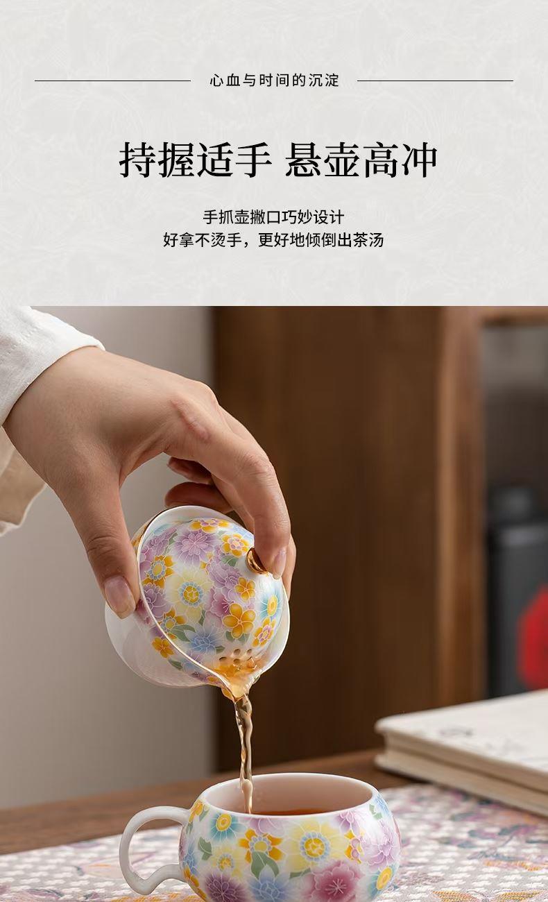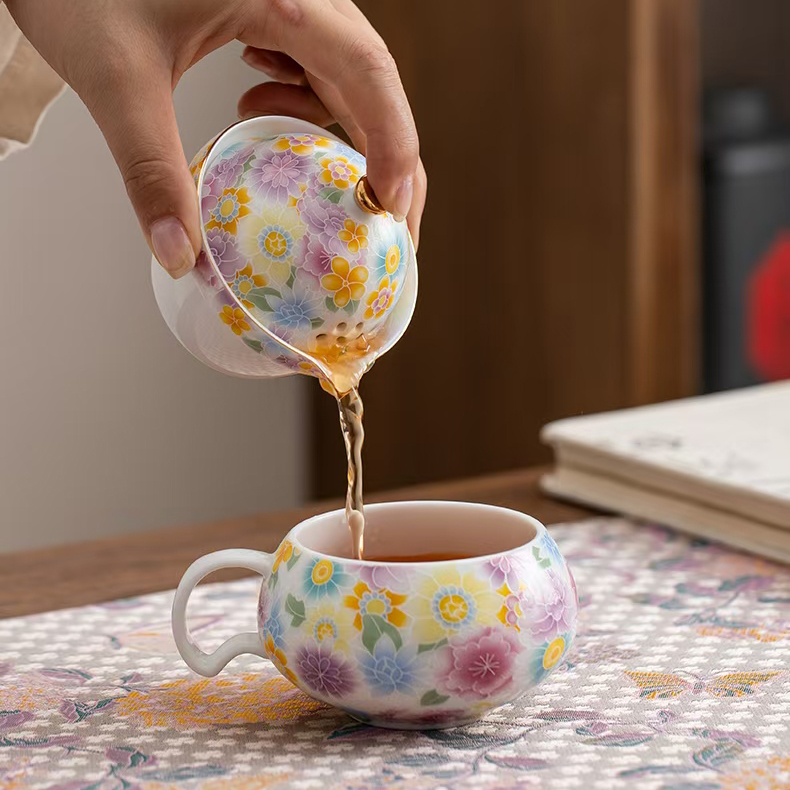 尾桥下窑陶瓷珐琅彩万花随手泡旅行茶具套装开业伴手礼会议赠品