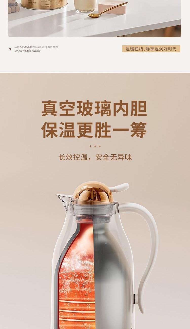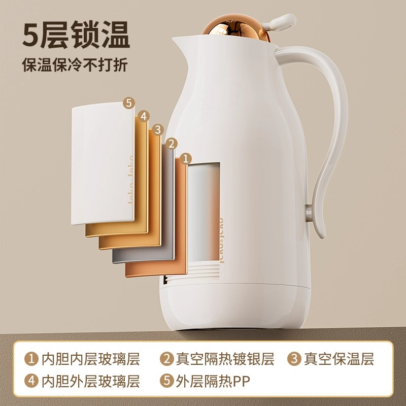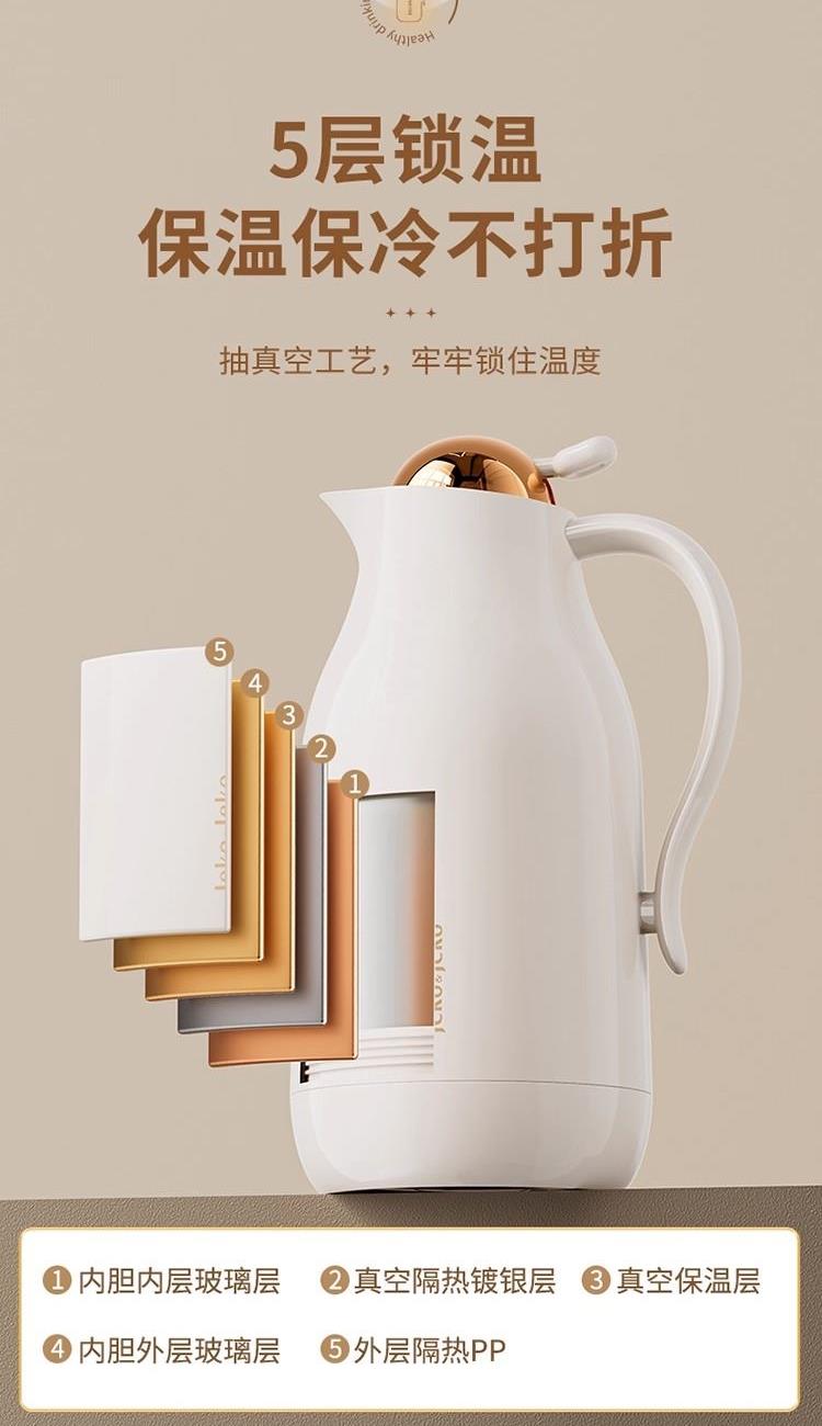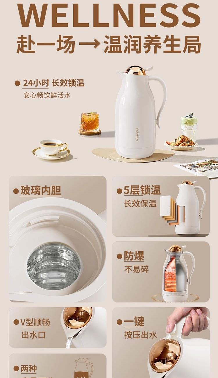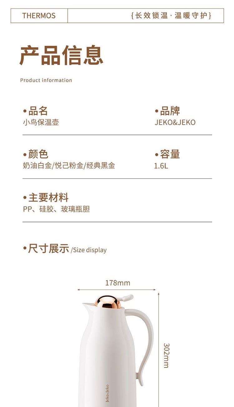 牛皮纸邮购盒包装,建议慎拍 容量:1600ml 材质:PP外壳+玻璃内胆+硅胶圈 颜色:奶油白金、悦己粉金、经典黑金 产品特点: 1、食品级PP防护外壳 2、食品级高硼硅玻璃内胆 3、保温镀银层 4、高真空隔热层