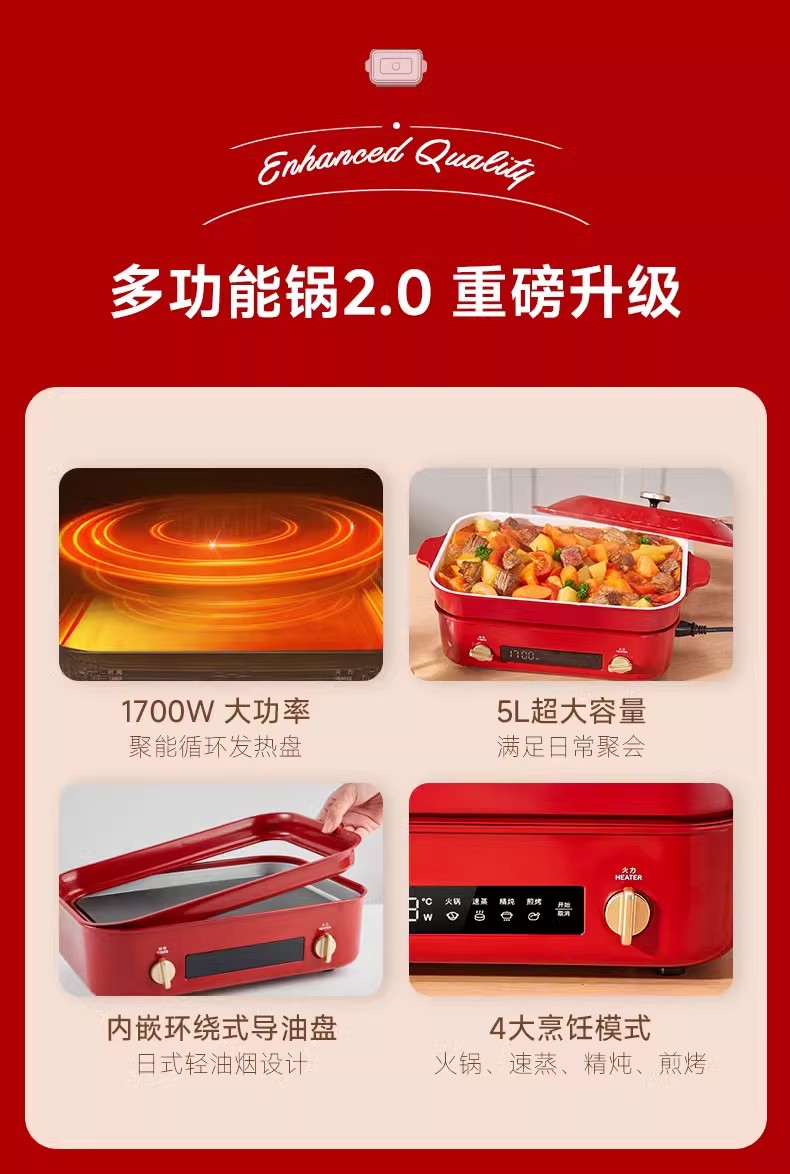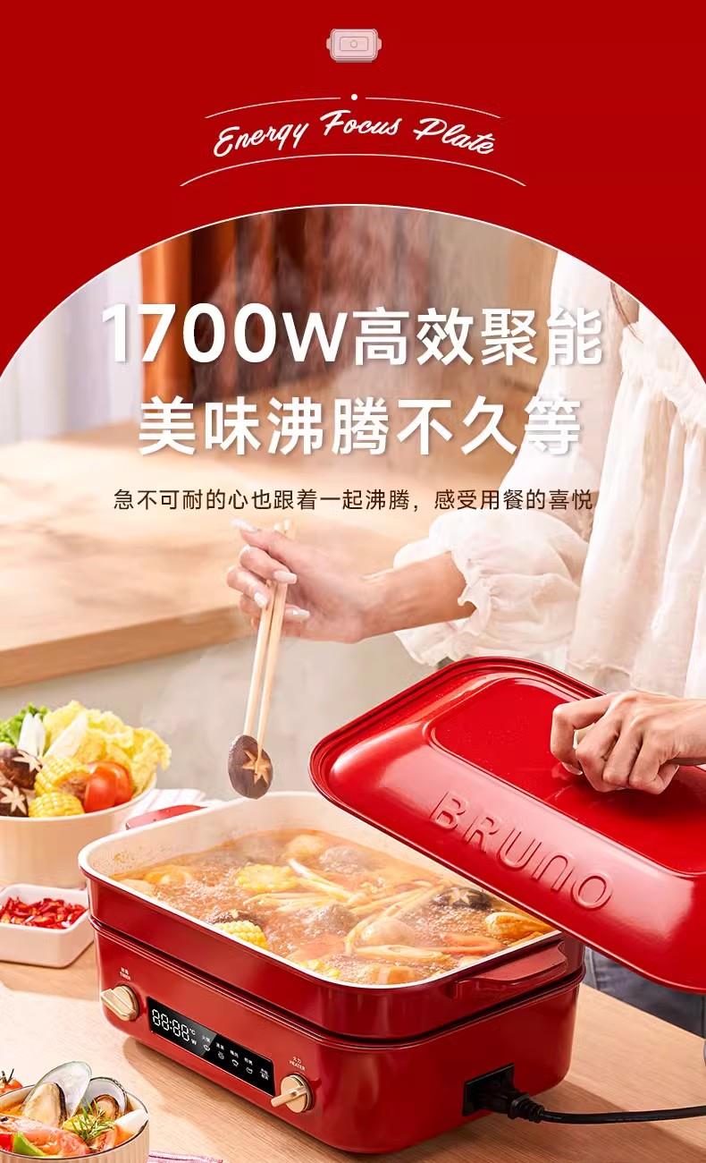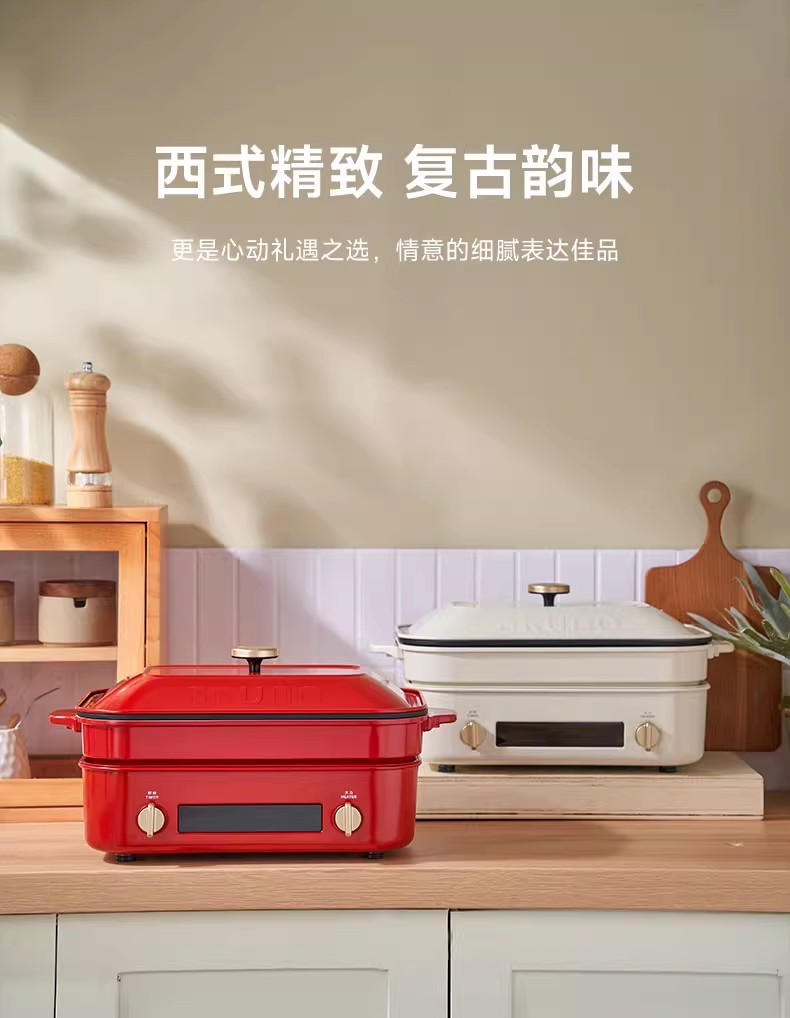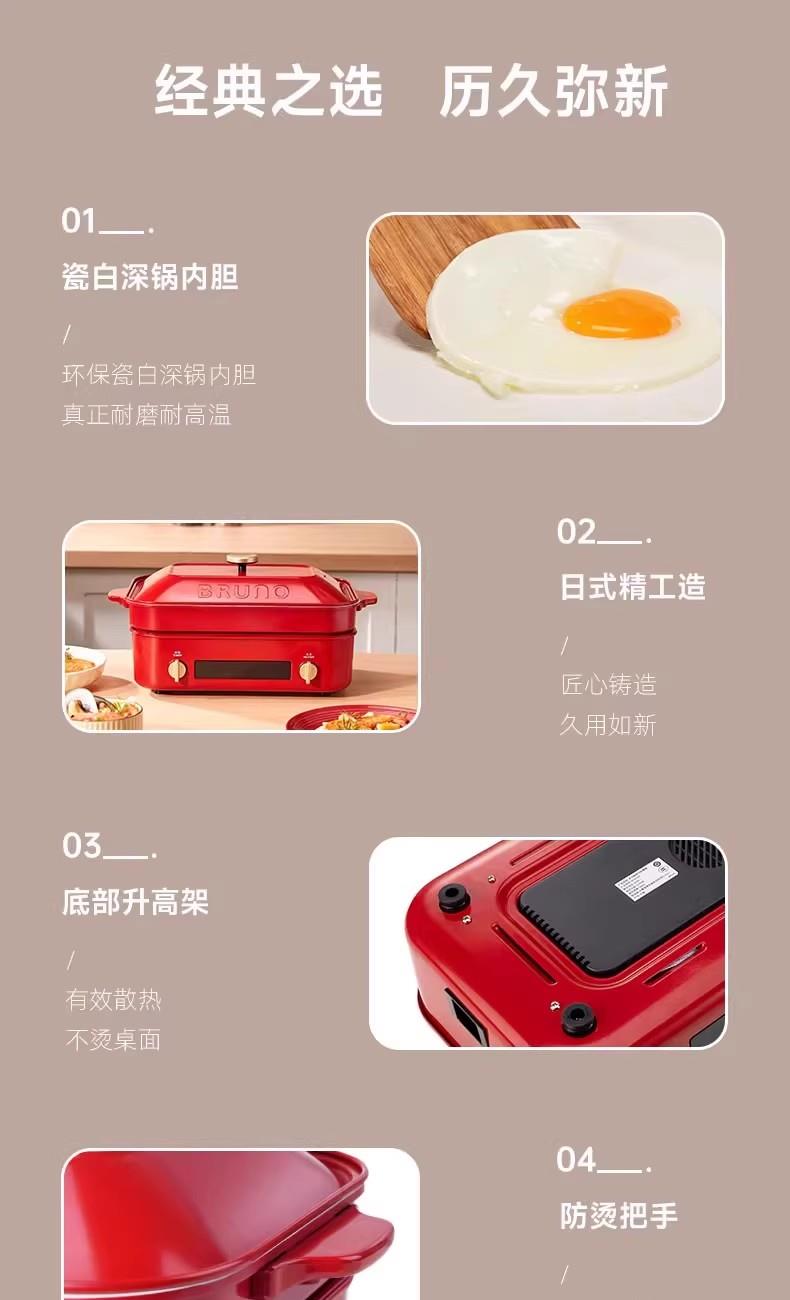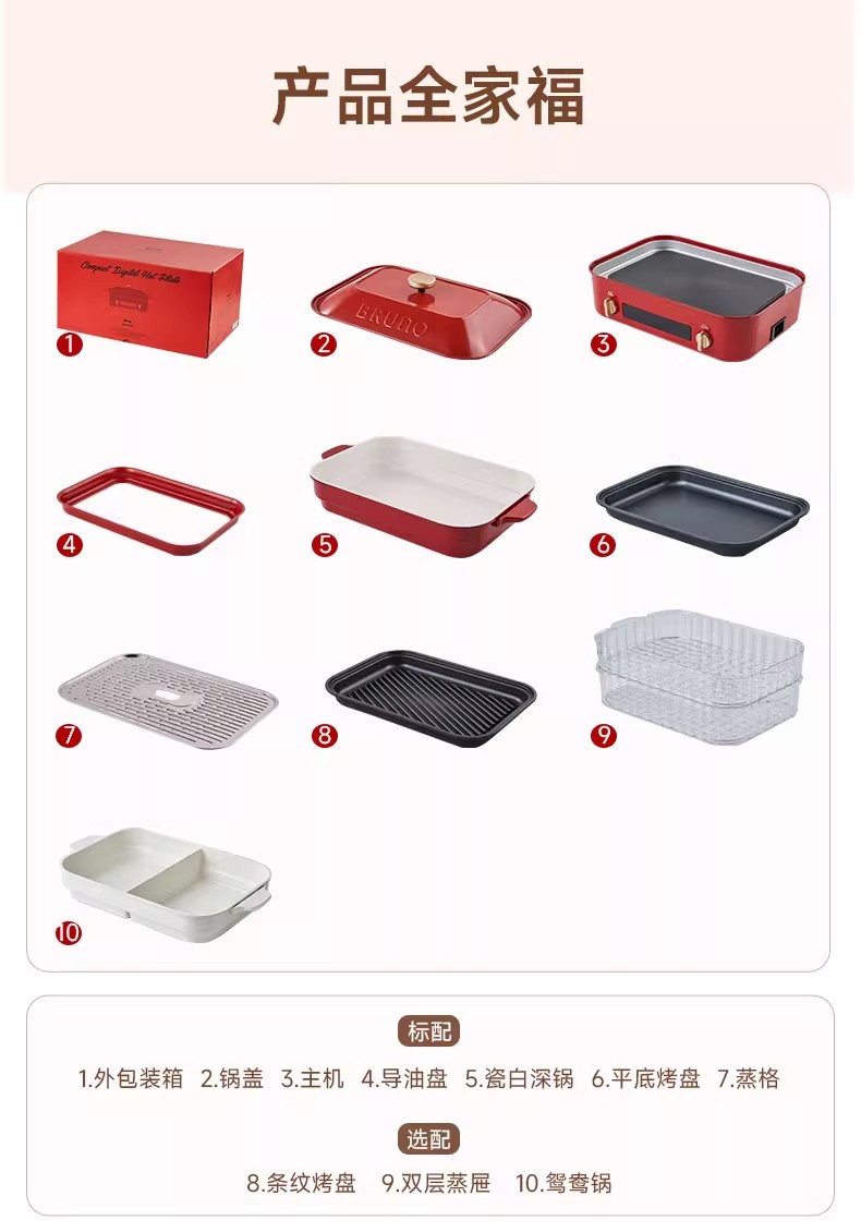 产品型号:BOE123 产品颜色:粉色 产品电压:220V 额定功率:1700W 产品净重:约6.2KG 产品毛重:7.6KG 产品尺寸:约430*260*205mm 标配:标配配件:深锅、不锈钢蒸架、条纹烤盘