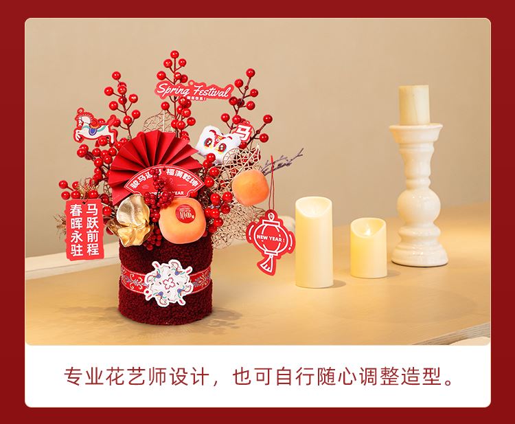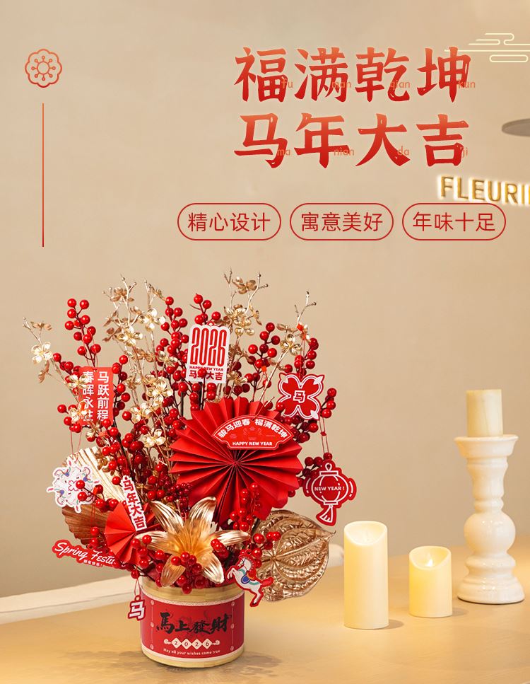 春节马上发财年宵花福桶送客户客厅装饰摆件F122A0