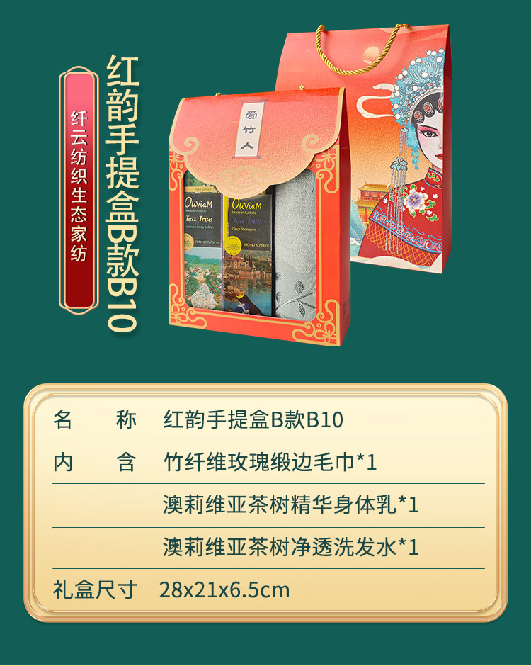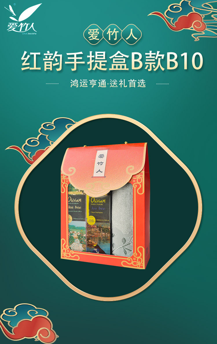 爱竹人红韵礼盒毛巾身体乳洗发水3件套B10