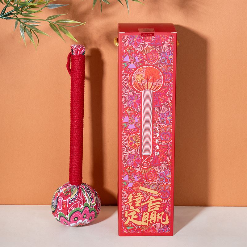 礼盒规格:340*90*90mm 产品配置:330*80*80mm艾草养生锤*1 标准穴位图*1 推荐理由: 让幸福来敲门,一锤定赢艾草养生锤礼盒,内装艾草经络养生锤一只,穴位图一份,健康艾礼更实用!主题“一锤定赢”,谐音一锤定音,朗朗上口,寓意客户使用这款礼盒或者使用艾草养生锤,即可赢利、赢取、赢储、赢余,成为人生赢家! 艾草养生锤选用厚实老粗布面料,装入艾草、当归、薏米、土茯苓、决明子、防风、山苍子、女贞子、黄柏九味中草药,纯手工制作而成,色彩艳丽,气味芳香,手柄更长,锤面更大,日常生活中,锤锤打打,按摩热敷,随处可用,可舒缓疼痛、温经通络、排湿除寒,调理人体亚健康。