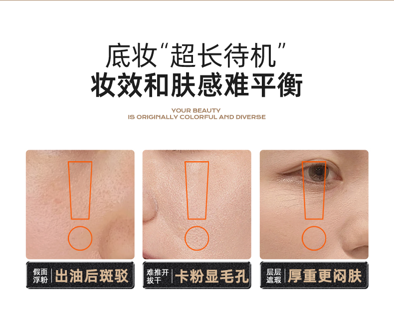 多重保湿、双重修护、抗蓝光,守护肌肤,底妆水润轻透不浮“燥”