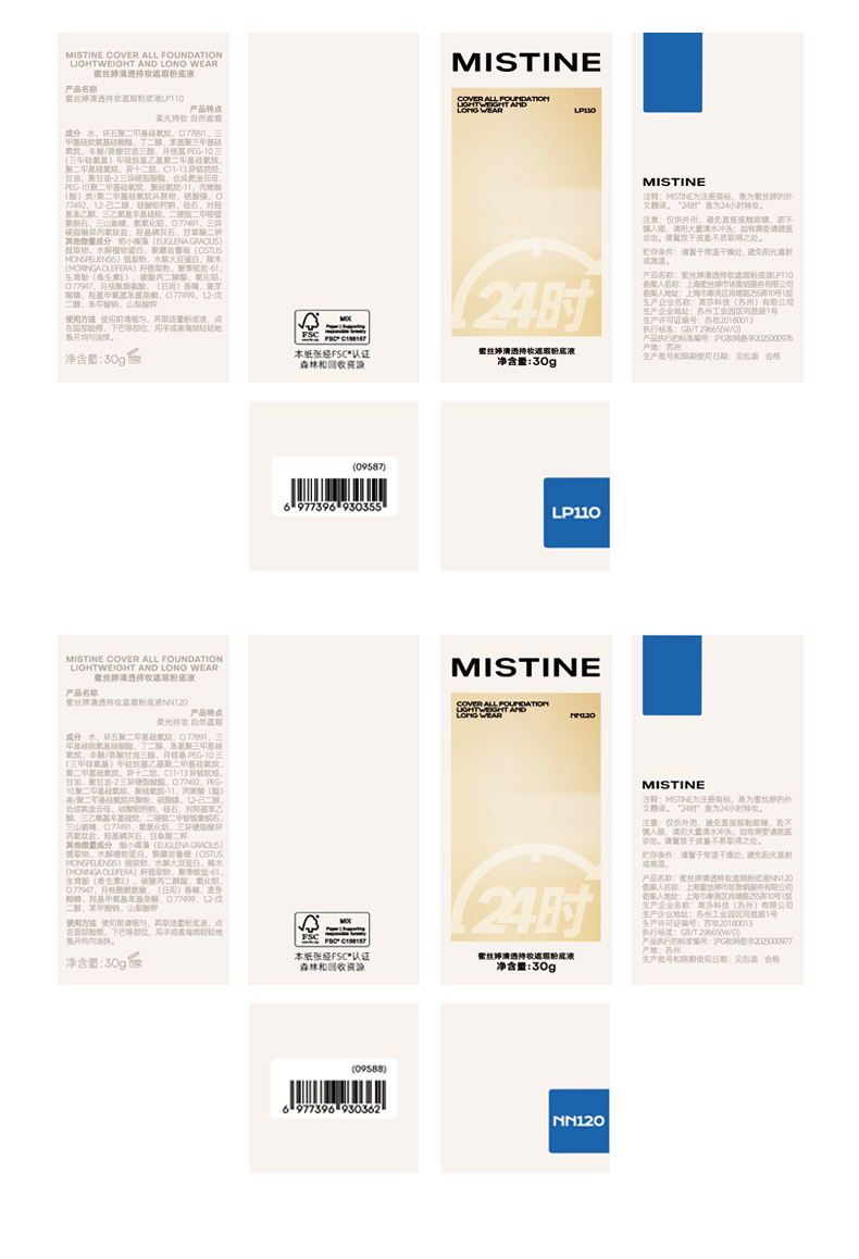 蜜丝婷清透持妆遮瑕蓝盾粉底液LP110白皙粉调色
