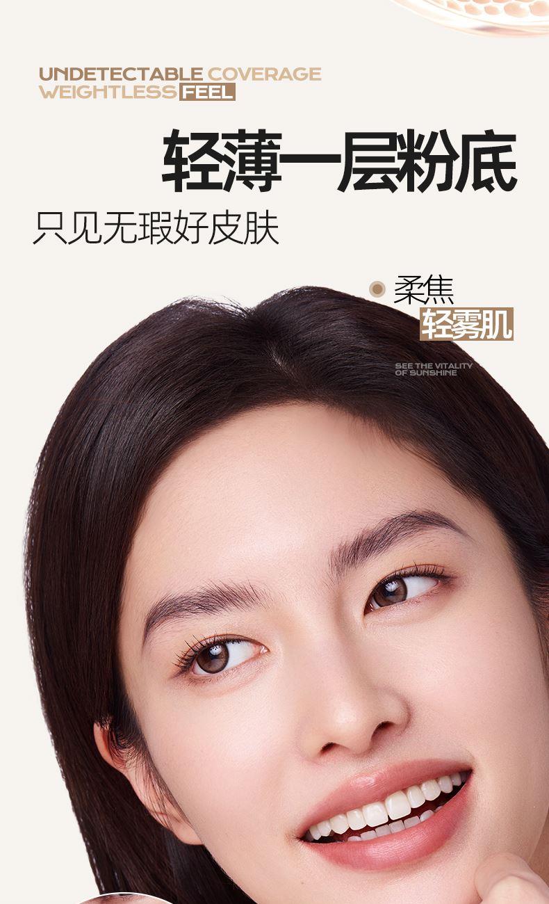 水凝柔纱科技(三乙氧基辛基硅氧烷处理亲水气流粉体)亲水气流粉体经过柔纱,外衣处理,为肌肤带来水润感,上脸贴牢肌肤,柔软亲肤,底妆舒爽不掉线,妆随容动,透气不闷痘,保证肌肤呼吸