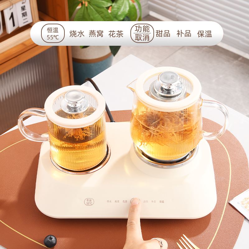 产品组成:整套=电陶炉+1杯壶+提手彩盒 产品材质:电器+玻璃杯壶(高硼硅) 产品功率:360W,15W 产品容量:600ML 外箱尺寸:一箱12公斤,44×66×75CM 产品特点: 煮炖粥、茶、汤等性能好,便于携带,是居家、旅行的好伴侣;耐高温的容器都可以使用。 高品质,精美提手彩盒包装。有颜值兼具实用性,是送礼的佳选。