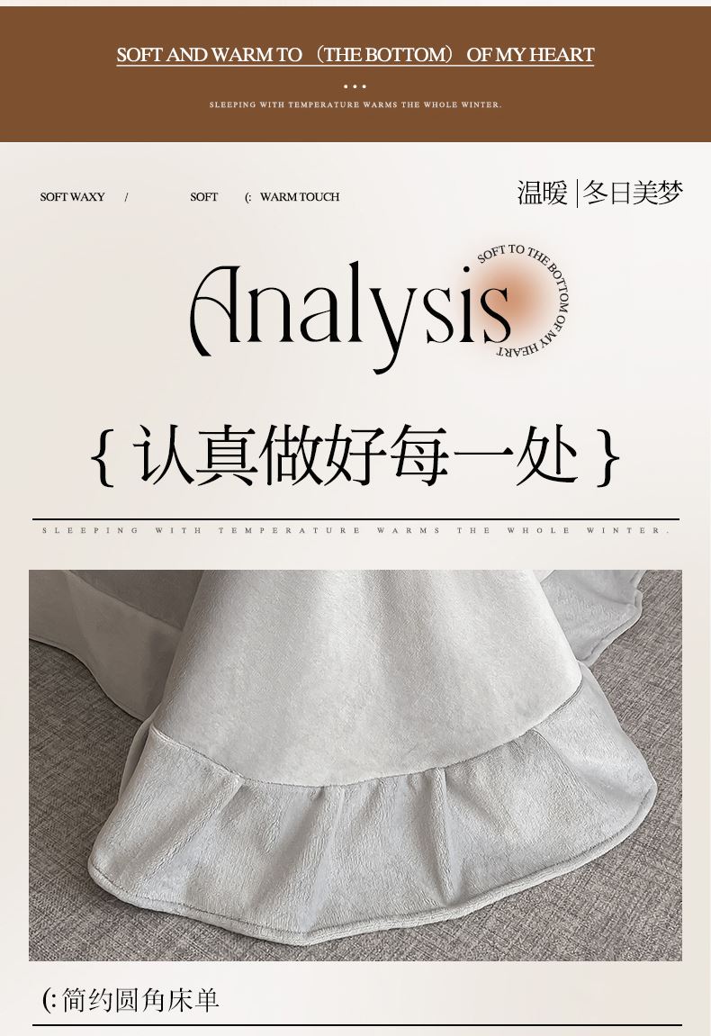 被套:200*230cm 床单:240*250cm 枕套:48*74cm*2 面料:牛奶绒 ▶牛奶绒面料,享温暖,用身体去感触。 ▶牛奶绒面料质地蓬松,透气性好,温暖舒适,云朵般细腻。