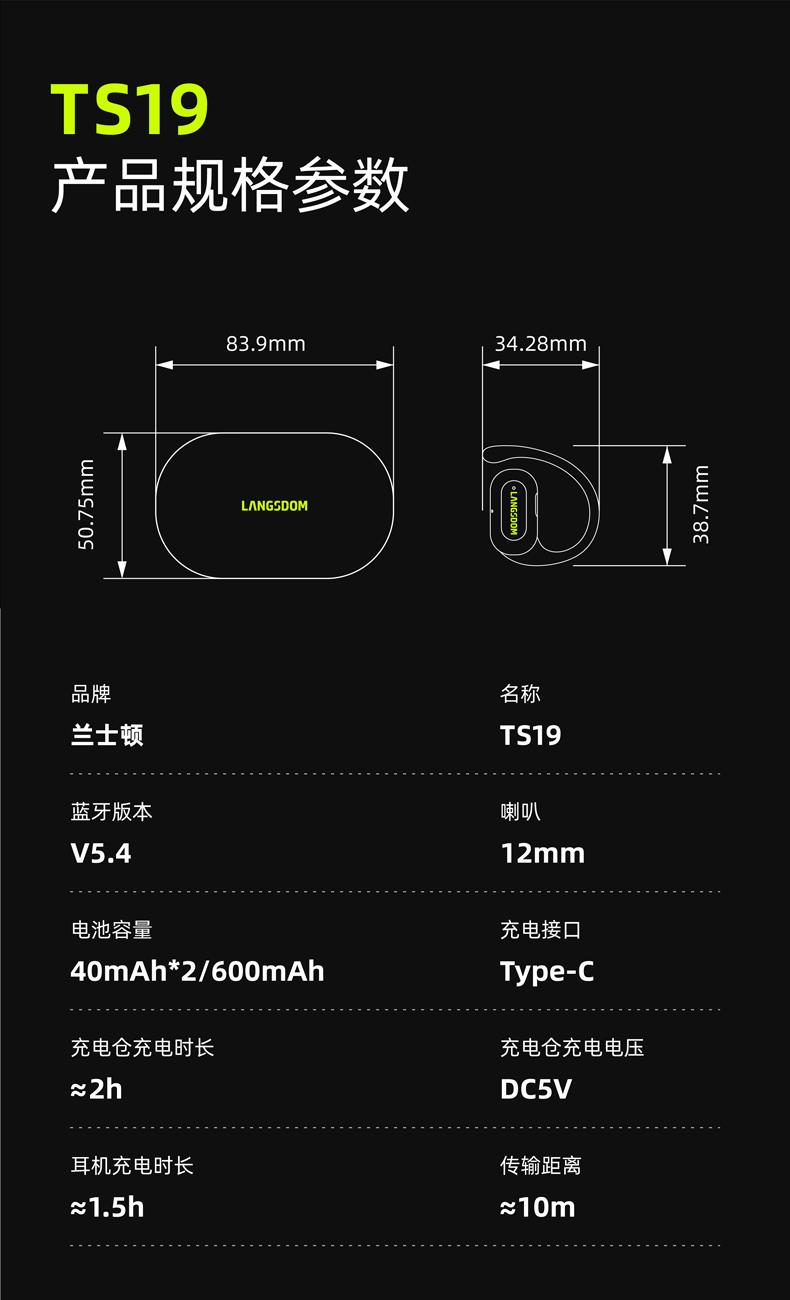 兰士顿挂耳运动开放式蓝牙耳机TS19 兰士顿挂耳运动开放式蓝牙耳机TS19