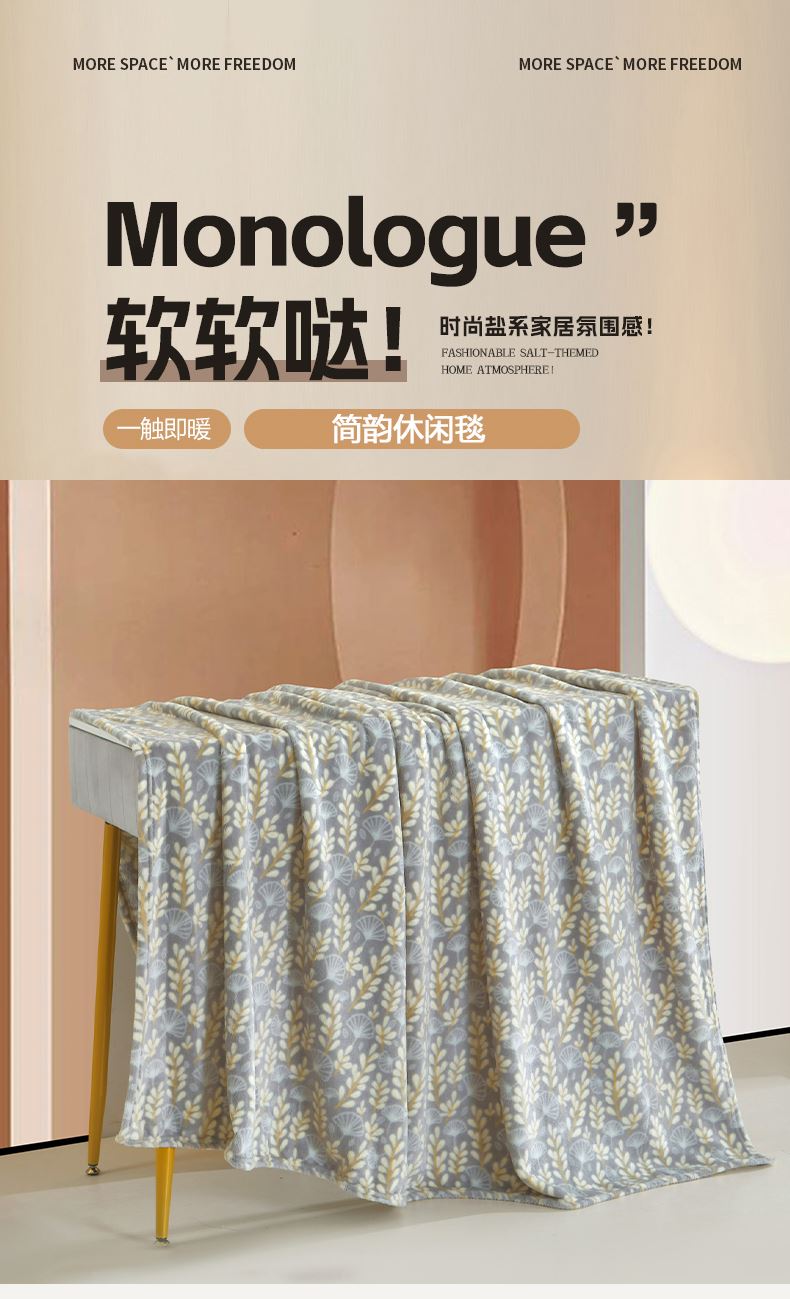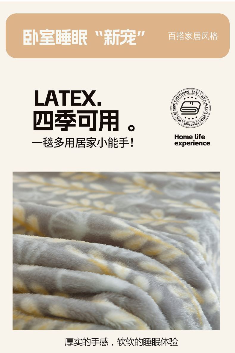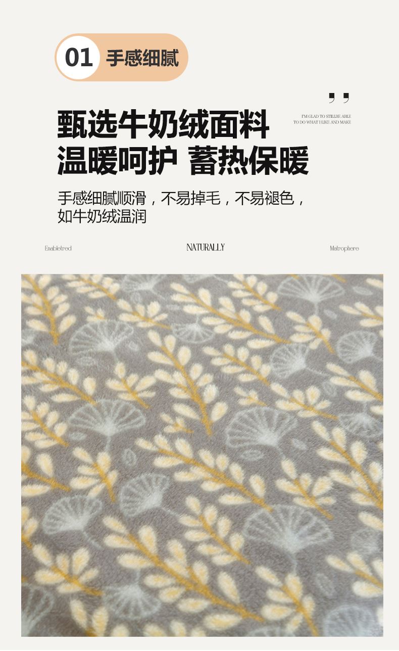 规格:150*200cm 面料:牛奶绒 克重:900g 产品包装:精美礼盒 包装尺寸:42*33*11cm 特点:牛奶绒面料,充分吸收汗气蒸发产生的热量, 舒适透气,精美大方,绒感细腻,呵护您娇嫩 肌肤新型植绒技术,绒毛结构丰盈紧实,不 易掉毛告别掉毛烦恼。