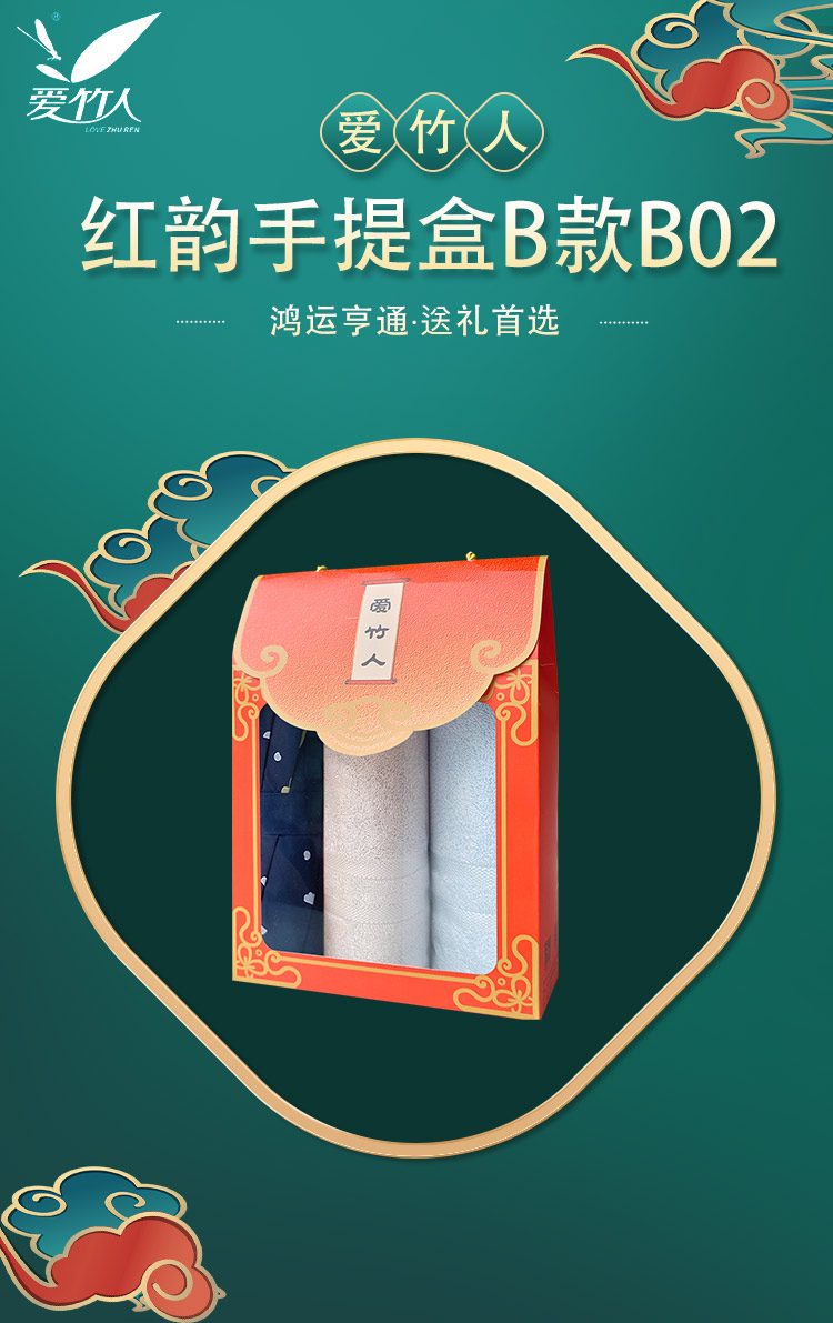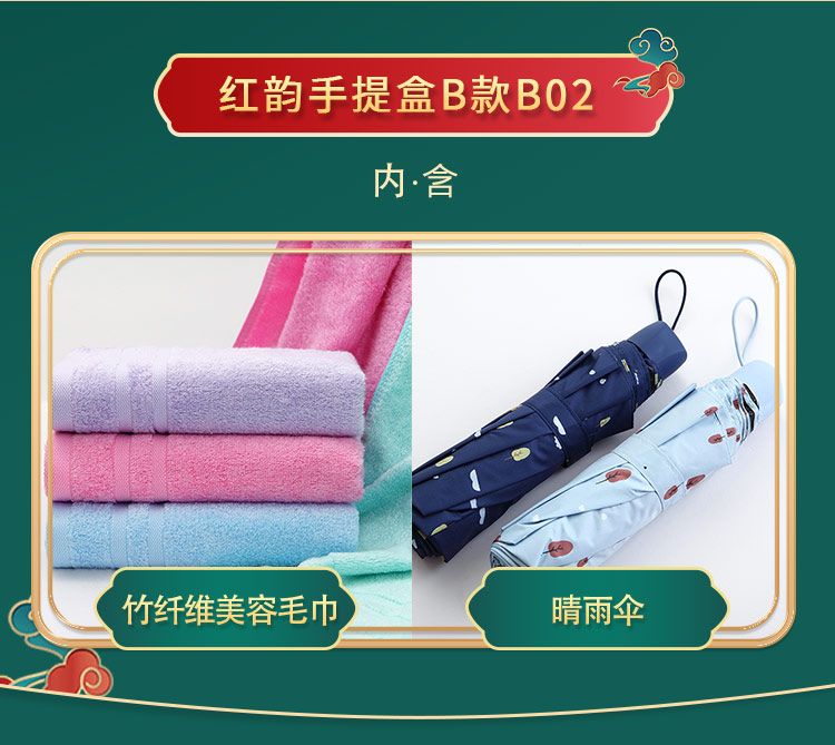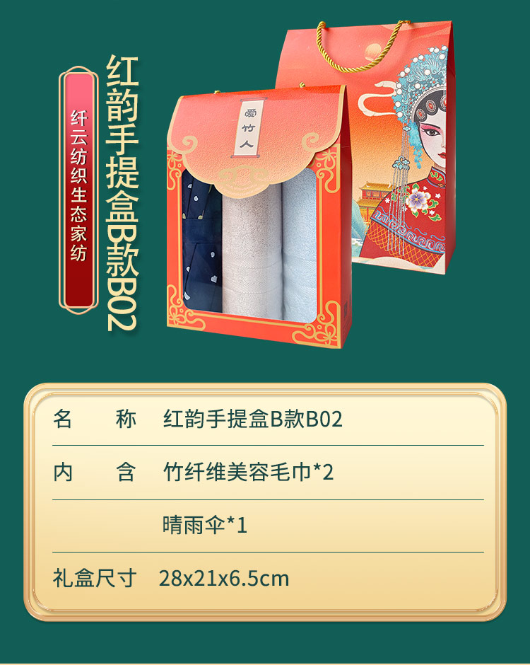 爱竹人红韵礼盒竹纤维毛巾晴雨伞3件套B02