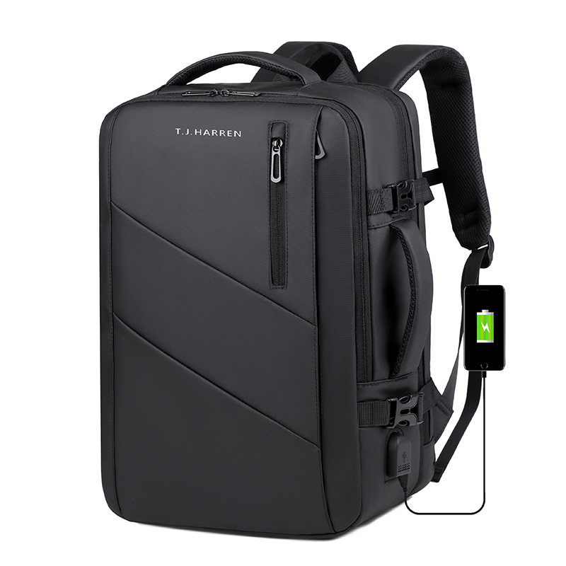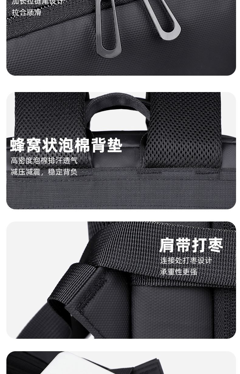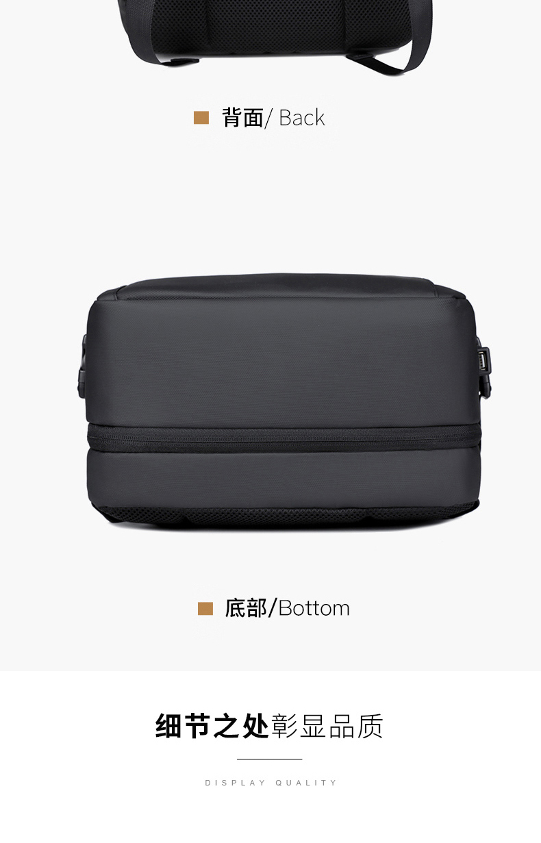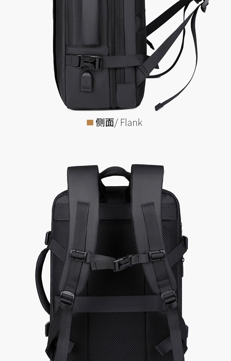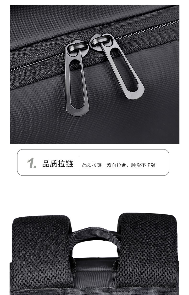 1、新款多功能可扩容设计,超大容量,旅行休闲商务三用;2、柔性防水皮膜面料,一擦即干,轻松打理;3、多隔层结构,分区合理,轻松收纳;4、双主袋扩容前共约22L大容量,适合日常通勤;5、双主袋扩容后共约36L大容量,适合长途旅行;6、独立加棉加厚电脑隔层袋,可放置15.6寸电脑;7、2个大容量前置拉链袋,放置贴身物品;8、带USB充电接口,充电更方便;9、多个内置物袋,方便收纳放置更多小物件;10、拉杆固定束带设计,解放双手;11、透气背负系统,配合加大加厚提手与肩带,可背可提、透气干爽,舒适减压出行;12、支持客户定制。
