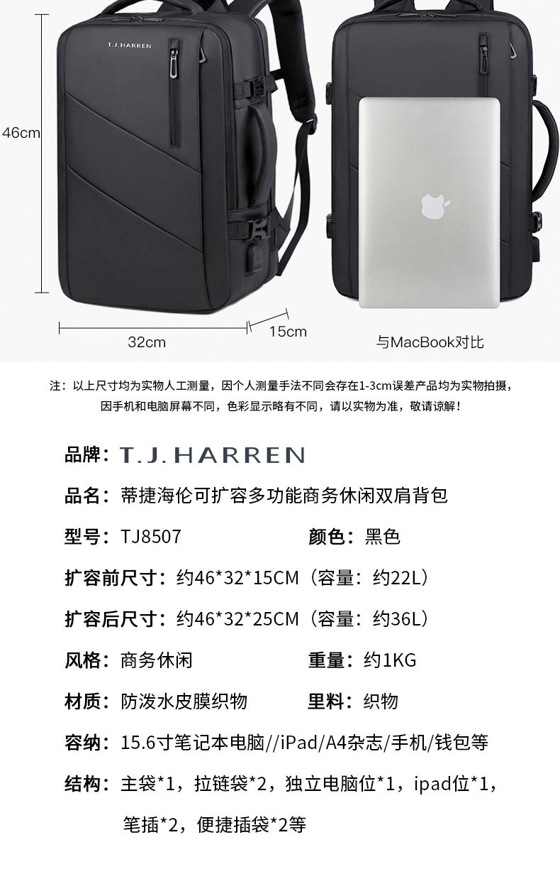 蒂捷海伦可扩容多功能双肩背包TJ8507